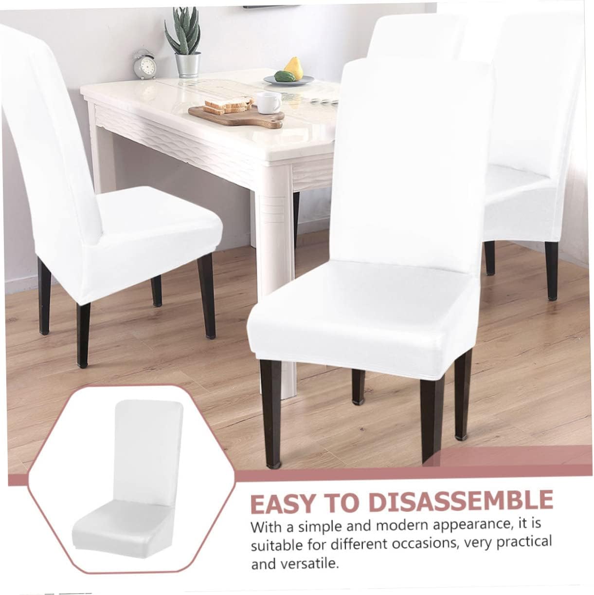 Package List 4 × Chair Covers Features - Material: PU waterproof fabric stretch chair covers - Size: 100.00X55.00X50.00cm/39.30X21.61X19.65in Dinning Chair Sleeve - Color: White dining chair - Fine workmanship ensures the details and appearance, it's decorative and PU Chair Protectors. - The chair cover comes with a simple appearance design, which is modern and fitted chair covers. - The chair cover is suitable for parties, festivals and other occasions to increase interest office chair cover. - This chair cover accessory is applicable to most chairs, very and Chair Seats Cover. - It is made of high grade material, it’s thick and , and waterproof and oil-proof parson chairs slipcovers.Goods Informationpu chair cover Are you still looking for a chair cover for your chair? Do you want to get a new look for your chair? Look at our product that can meet all your requirements with durability and function.office chair protector It can be used as a chair decoration and also can serve as a protection to your chair