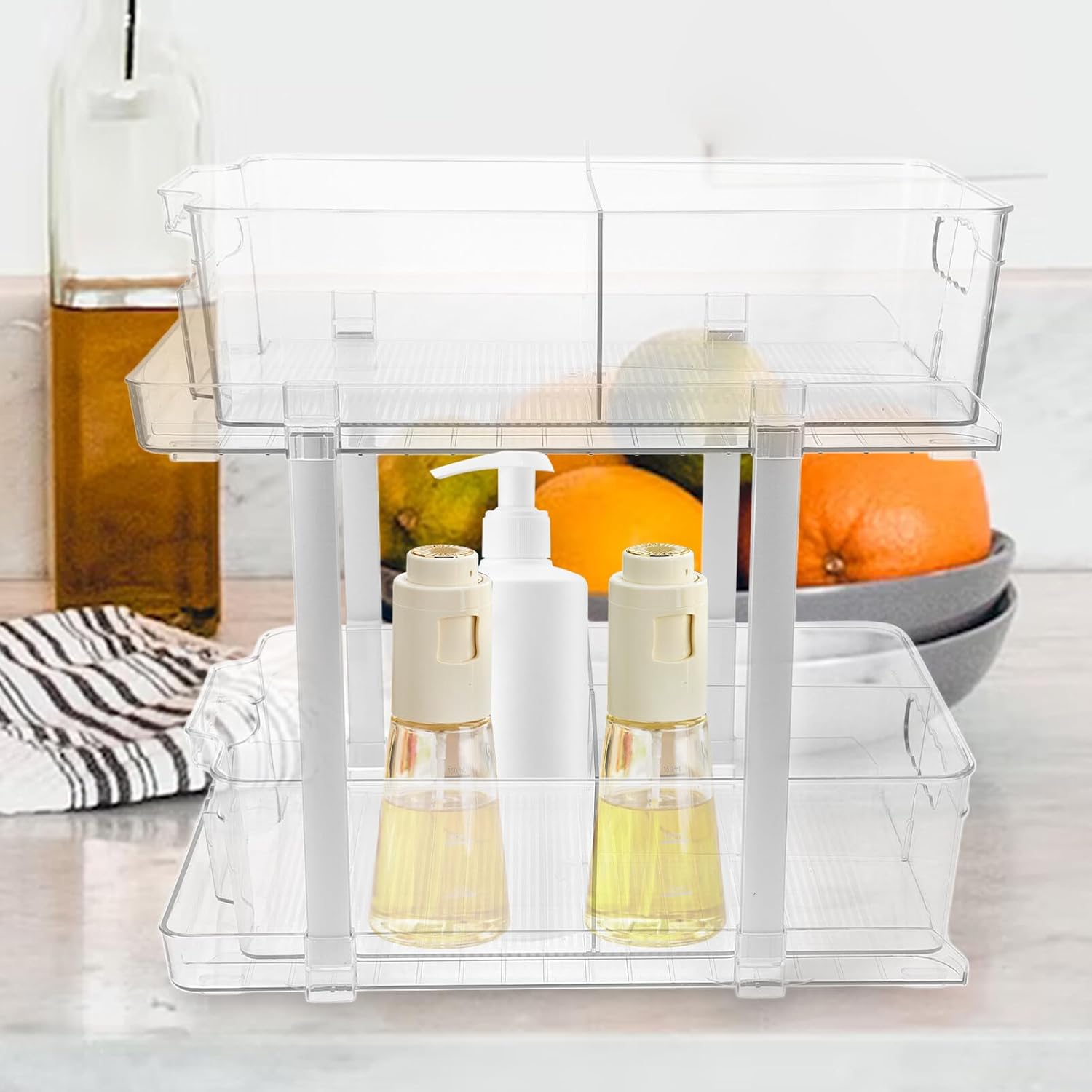 DescriptionThe bathroom countertop organizer is made of plastic materials, and not easy to break. It can be applied to bathrooms, kitchens and smoother surfaces. Use this shelf to keep your house and countertops in order. Can be given as a to your friends and family. Features-Color: Transparent-Material: Plastic-Size: 37.00X35.50 X22.80cm/14.54X13.95 X8.96in- In adoption of plastic materials, this storage shelf is firm and sturdy, can support long use time. - There is enough capacity to store and organize your belongings and keep them safer.- You can place this shelf on the desktop stably, convenient for storage, making your bathroom or bedside table more tidy.- Fine workmanship, good texture, smooth hand touching feel, more and safer to use.- Can be widely applied to kitchen, bedroom, bathroom and more scenes, storage rack and also decor for your home.Package Including1 x storage rack