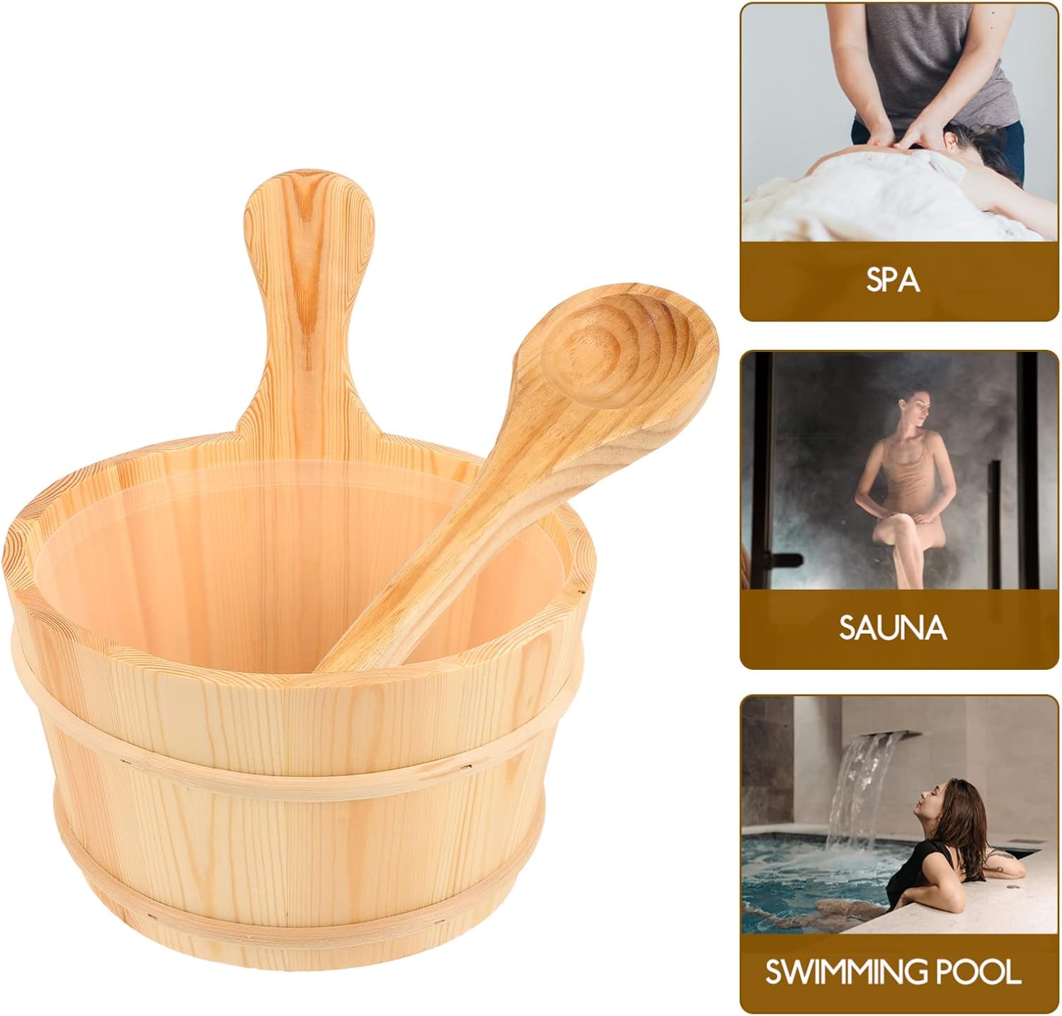 Description Are you looking for a , affordable bathing barrel and spoon set? If your answer is yes, please come and take a good at this product! Our bathing barrel and spoon set must meet your needs. Both have wooden handles that are easy to grip, convenient to use. Features -Color:As Shown -Material:Plastic, wood -Size:24.80X24.80X14.50cm/9.75X9.75X5.70in - Large-capacity space design, just one time adding water can meet the use of sauna. - Excellent workmanship ensures this bucket and spoon to be practical and for long time use. - Sauna bucket and ladle set are easy to carry, great for Sauna, Bath, SPA, Pool, Shower. - Place the bucket and ladle in a dry and ventilated place after using the bucket and ladle. - This sauna bucket is made of wood, natural manufacturing process keeps the original wood smell and grain. Good anti- effecting use time.- Color: As Shown.- Size: 24.8x24.8cm.Package Including1 x wooden bucket1 x wooden ladle1 x plastic liner