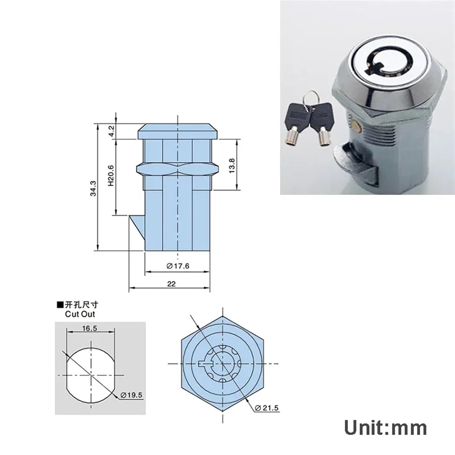 Lock RingsItem:MMS466 Lock Type:Cabinet Cam LockKey Type:Flat Key or Tubular KeyMaterial:Zinc AlloyFinished:None Key Combination:SameKeyGross Weight:100-120g/pcsPackage:PP BagAccessories:Lock*1pcs, Key*2pcs