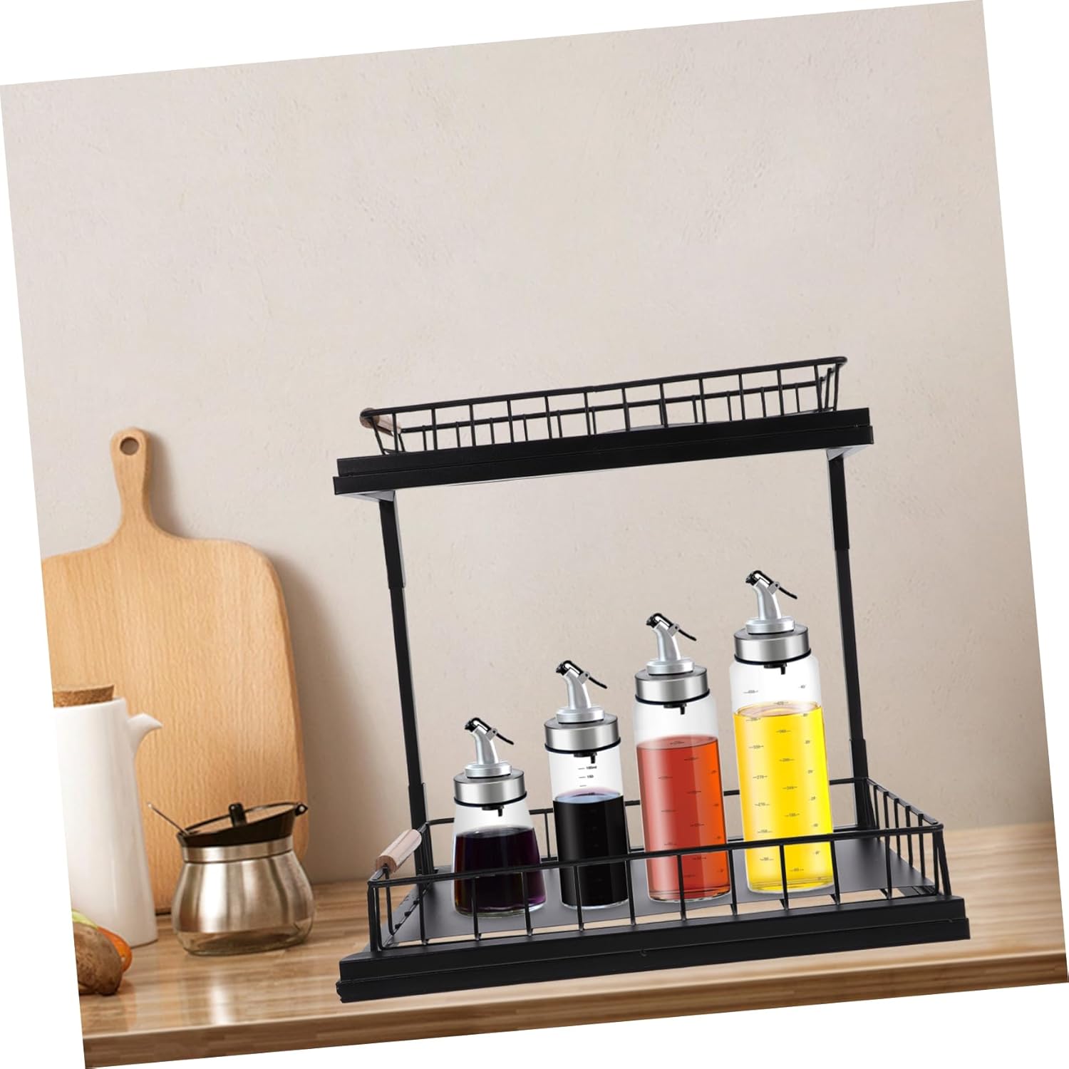 Package Include 1 x Under Sink Organizer Characteristics - Color: Black Cabinet Storage Rack -Material:Carbon steel Under Sink Spice Holder - Size: 38.00X36.50X28.00cm/14.93X14.34X11.00in Spice Rack - kitchen condiment storage helper. It is definitely a storage accessory for the family Counter Condiment Holder. - Humanized design for convenient use and space, the storage rack can very Sliding Storage Organizer. - The material is sturdy and , which is wear resistance and for the long time use Cabinet. - The storage rack can be pulled out smoothly, very convenient and for cabinet use Telescoping Sink Shelf. - The two-layer design that it has large capacity, can store spice jars, kitchen ware and so on Sink Storage Rack.Goods InformationTelescopic Sink Shelf Enough capacity to store many seasoning bottles and kitchen supplies.Sink Storage Rack want to have a kitchen storage rack to store your seasoning bottles and other items? Then, our storage rack is carefully prepared for you.Telescoping Sink Shelf A helper for kitchen