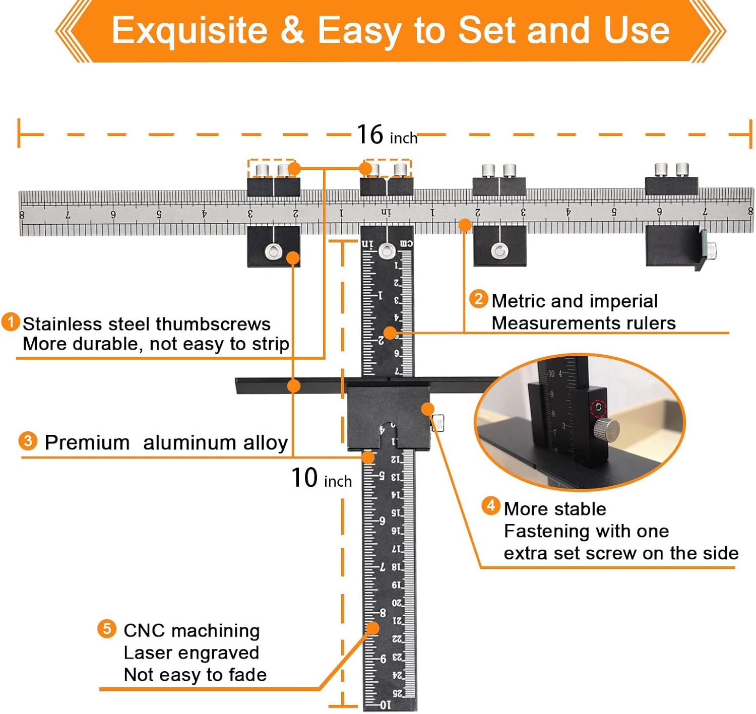 | Included Components | 1* Double Thumbscrews Cabinet Template Tool Jig, 1* Storage Bag,1* Set of Extra Accessories |