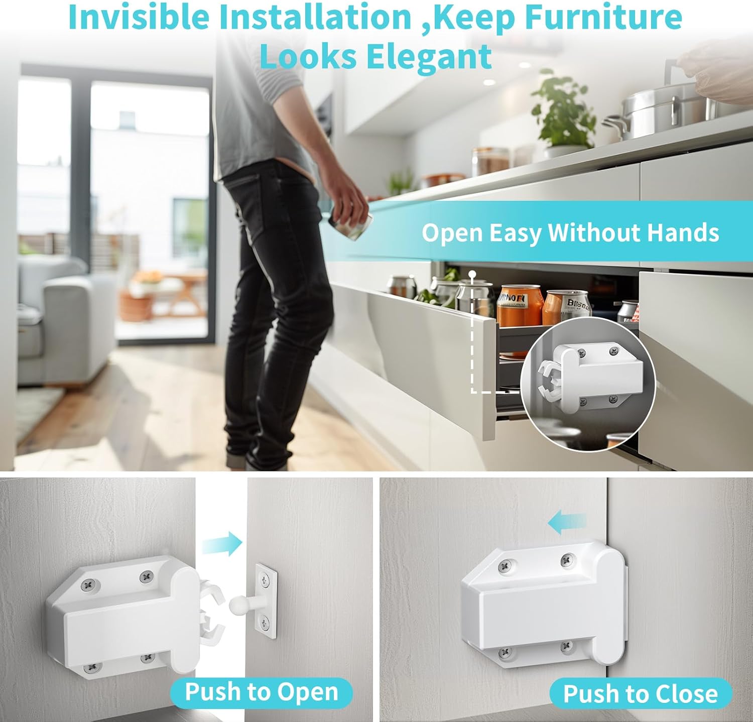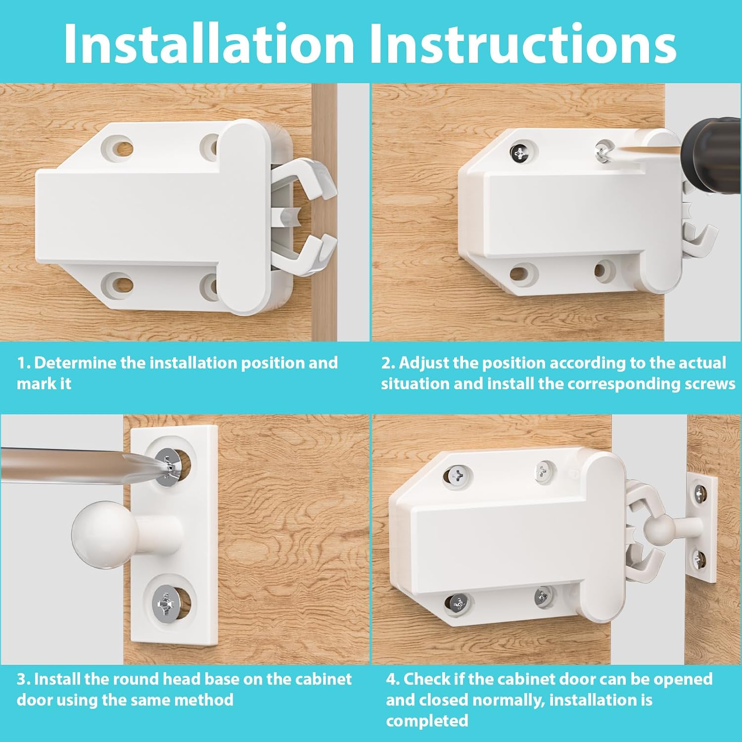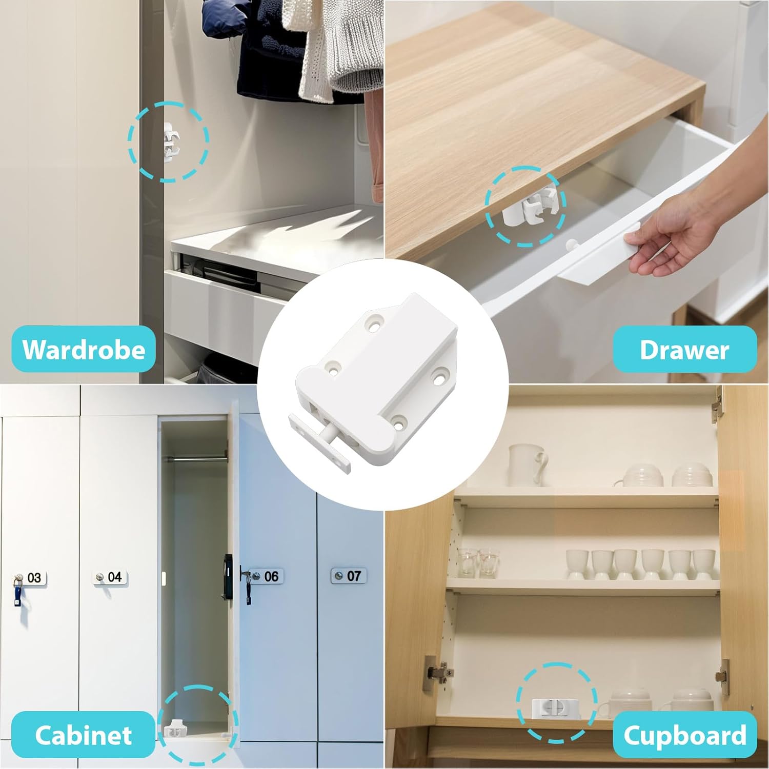 These durable cabinet latches provide a secure, push-to-open closure for drawers, cabinets and more. Crafted from high-quality steel with a black powder coat finish, the I-EASYDWW latches feature a self-locking catch that holds doors and drawers firmly shut until pressure is applied to release. Installation is simple with no tools required - just press fit each latch into place. Reopening is effortless thanks to the smooth-operating release catch. A practical choice for home, office or commercial use, this four-pack of cabinet latches ensures discreet, dependable security where needed most.