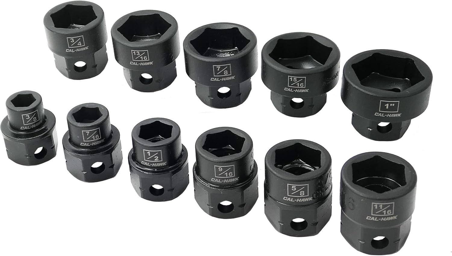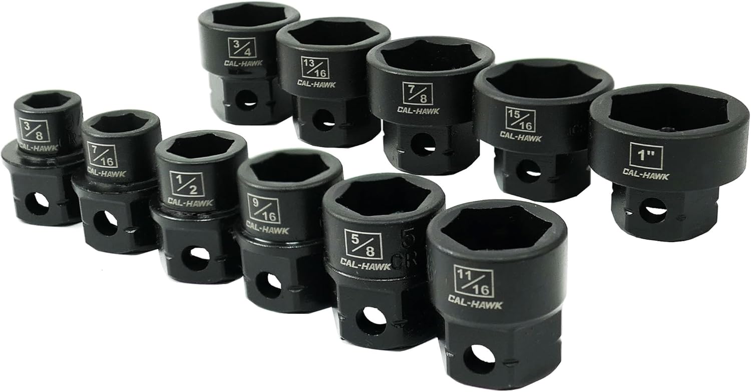 Introducing the 11Pc 1/2" Drive Nano Low Profile Impact Socket Set SAE from Cal-Hawk Pro. This comprehensive set is designed to tackle even the most challenging automotive and industrial projects with ease. Crafted from premium materials, these sockets boast a low-profile design that allows you to access tight spaces effortlessly. The 1/2" drive size ensures maximum torque transfer, while the SAE sizing ensures compatibility with standard American fasteners. Whether you're a professional mechanic or a DIY enthusiast, this set will become an indispensable addition to your toolkit. With its durable construction and precision engineering, you can rely on this socket set to deliver outstanding performance and longevity. Upgrade your toolbox today and experience the convenience and reliability of the Cal-Hawk Pro 11Pc 1/2" Drive Nano Low Profile Impact Socket Set SAE.