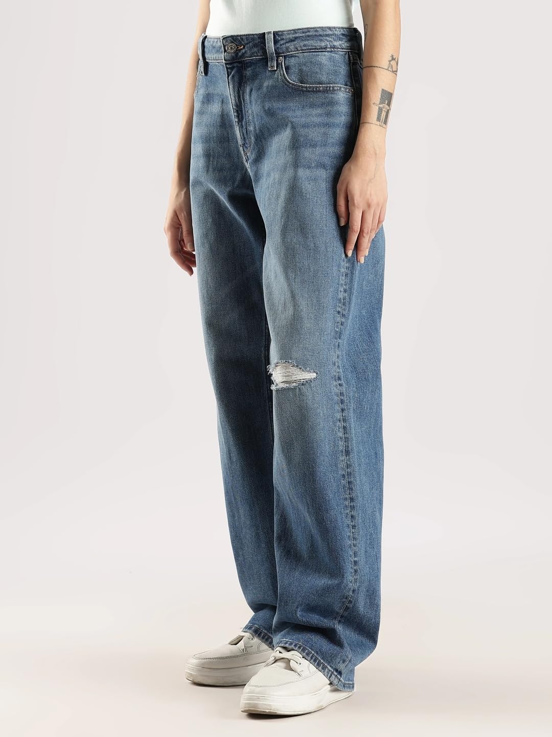 A relaxed straight leg silhouette, these jeans reimagine 90s styling in an updated fit. Crafted from extra soft cotton stretch denim for a flexible fit and feel. Finished with a CK monogram logo patch at the back waist.
