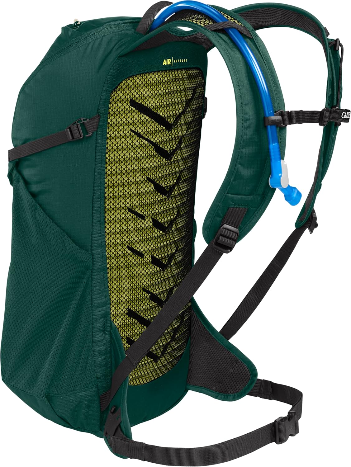 The Rim Runner X22 Hiking Hydration Backpack is designed to help you reach new heights, whether you're heading out for a short day hike or a longer trek. Crafted from recycled 210D nylon double ripstop, this lightweight and durable pack offers a streamlined design with smart storage features. The Air Support back panel uses body mapping technology to maximize ventilation in high-heat zones, while the removable stability belt and adjustable sternum straps provide a secure and adaptable fit. With a 50oz Crux reservoir and internal hydration sleeve, staying hydrated is easy. Additional features include a stretch overflow pocket, cargo compression system, side stretch pockets, and an essentials organization pocket to keep gear accessible and secure. Dual daisy chains and a tube trap add trail-ready functionality for every adventure.