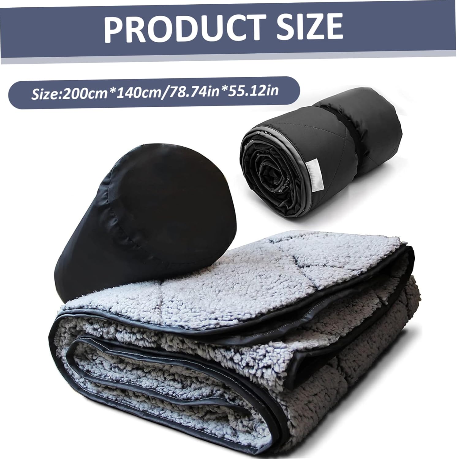 Description: The Camping Blanket is a must-have for any outdoor enthusiast. With its black waterproof Oxford cloth on the front and soft gray lamb wool on the back, it provides excellent warmth and comfort, even in cold weather. The lightweight design and handles make it easy to carry, while the extra-large size is perfect for covering two people. It's versatile enough to be used for various activities, such as camping, hiking, or even as a pet mat or emergency blanket in your car. The reinforced edges ensure durability, making it a reliable choice for any outdoor adventure. Whether you're going on a family picnic, beach outing, or tailgate party, this blanket provides comfortable seating and warmth. It's also perfect for rainy football games or cold park days. With its high-quality construction, this blanket is sure to last for years to come. Get ready for your next outdoor adventure with the Camping Blanket. Features:. Camping Blanket. -Color: Black. -Material: Oxford Cloth & Lamb Wool. -Size: about 200*140cm/78.74*55.12inch. Note: Manual measurement, please allow slight errors on size. The colors may exist slight difference due to different screens. Package Including 1Pcs Camping Blanket
