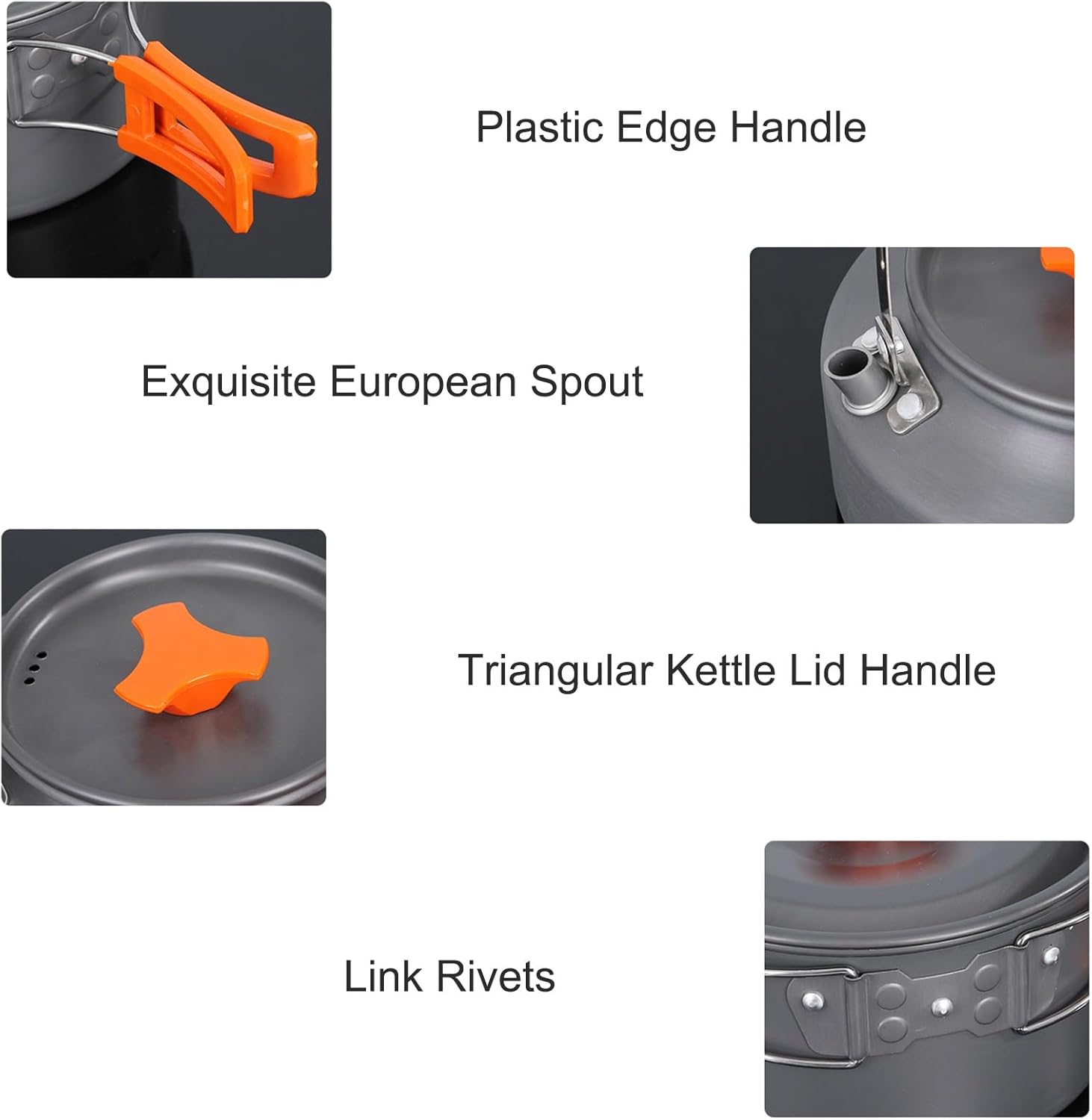 The Best Money You Ever Spent - The Camping Cookware Mess Kit includes 1 pot with lid + 1 fry pan + 1 kettle Small bowl, spoon, dish brush, storage bag. A great choice for hiking, backpacking, camping or any other activity.Multi - Ways for Cooking: The large size pot can be hung over the fire or just put on open fire. All the pot pan and kettle can be not only used with gas tank but also firewood.High Quality Pots And Pan - Both the pots and fry pan are made from anodized aluminum which is non-toxic and lightweight. Coated with a non-stick for easier use and clean up. Each piece has handles which are foldable and thermally isolated so you don’t burn your hand.Easy to Carry: Foldable handles on pot or pan can be folded to save space. Small size and portable, all the objects in this cooking set can be stored together in a mesh bag for convenient carry.Enjoy Cooking Anywhere You Go: This awesome cookware kit is designed for anyone loves outdoor camping with families and friends! It is super-portable, making it much more convenient for camping, hiking, backpacking, picnic and other outdoor activities!Note: 1.Products are measured manually, there may be an error of 2-3cm, please refer to the actual situation.2. If you have any questions after receiving the goods, please contact us within 24 hours.