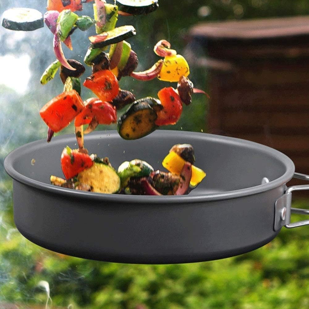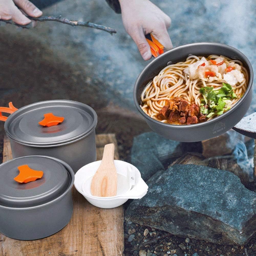 Finally enjoy the backpacking mess kit outdoors without second-guessing if you packed everything to cook and serve your next meal with the lightweight, compact and portable backpacking cookware set specification Name: Camping Cookware Material: hard alumina Size: as shown Weight: about 1.51kg Scope of application: outings, self-driving, camping, fishing, cycling Packing list: 1*large pot 1*medium pot 1*small pot 1*frying pan 1*soup spoon 1*rice spoon Thank you for your patronage and look forward to your next visit. If you are satisfied with the product, please let us know. We value the evaluation of each buyer. If you are not satisfied with our products or services, you can contact us at any time.