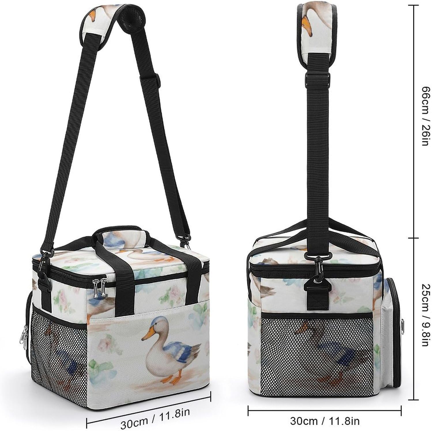 Versatile design: The Watercolor Duck print travel cooler bag stylish, gender-neutral design is suitable for all ages and occasions, whether for work, gym, outdoor events, or travel.Perfect for every occasion: This insulated food bag is not just for camping, rugged cooler bag is an excellent choice for everyday use, such as meal prep, lunch at work, grocery shopping, and more.Space-Saving design: The stand-up structure of the outdoor lifestyle bag saves space and makes it easy to store when not in use, insulated grocery bag perfect for compact packing.Machine washable: The reusable lunch bag is easy to maintain, food organizer bag is washable, but avoid prolonged soaking or bleaching to preserve its quality.