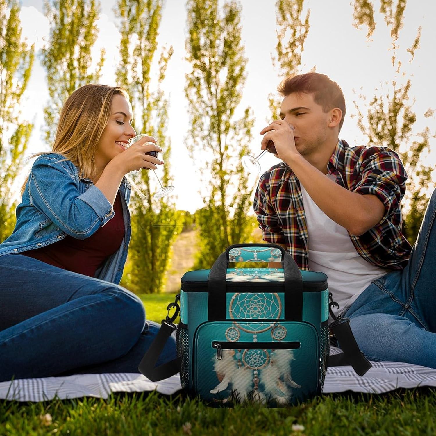 Versatile design: The White Dream Catcher Feather print travel cooler bag stylish, gender-neutral design is suitable for all ages and occasions, whether for work, gym, outdoor events, or travel.Perfect for every occasion: This insulated food bag is not just for camping, rugged cooler bag is an excellent choice for everyday use, such as meal prep, lunch at work, grocery shopping, and more.Space-Saving design: The stand-up structure of the outdoor lifestyle bag saves space and makes it easy to store when not in use, insulated grocery bag perfect for compact packing.Machine washable: The reusable lunch bag is easy to maintain, food organizer bag is washable, but avoid prolonged soaking or bleaching to preserve its quality.