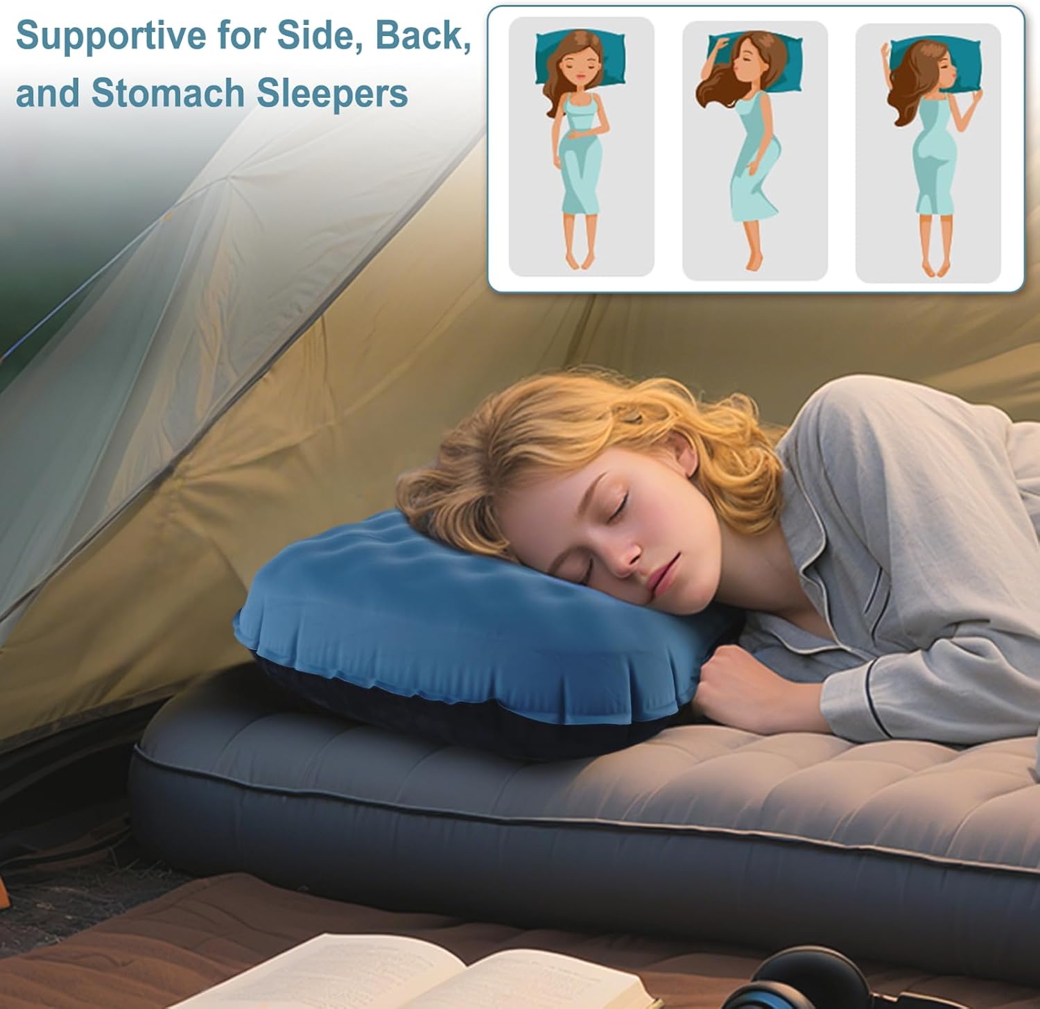 Perfect for Multiple Uses This versatile air pillow is designed for much more than just camping. Use it as a cozy beach pillow for lounging on the sand, an inflatable travel pillow for flights, or a lightweight blow-up pillow for hiking and backpacking adventures. Its compact design makes it an essential addition to your camping gear and travel essentials. Camping Pillow: Ideal for camping, providing a comfortable night's sleep no matter where your adventures take you. Beach Pillow: Perfect for the beach, offering a soft, supportive place to rest your head on the sand. Backpacking Pillow: Lightweight and compact, making it easy to carry along on your backpacking trips. Inflatable Pillow: Quick to inflate and deflate, providing on-the-go convenience and comfort. Travel Pillow: Portable and adaptable, ideal for all types of travel, from flights to road trips. Outdoor Pillow: A must-have for outdoor enthusiasts, ensuring restful sleep in nature. Beach Pillow for Sand: Specifically designed to offer comfort on sandy beaches. Lumbar Support Pillow: Provides excellent lower back support during long journeys. Air Pillow: Durable, versatile, and comfortable, perfect for a range of outdoor activities and travel adventures. Upgrade your outdoor and travel experiences with our multifunctional, easy-to-use inflatable camping pillow. Enjoy the ultimate blend of comfort, durability, and portability—wherever you go!