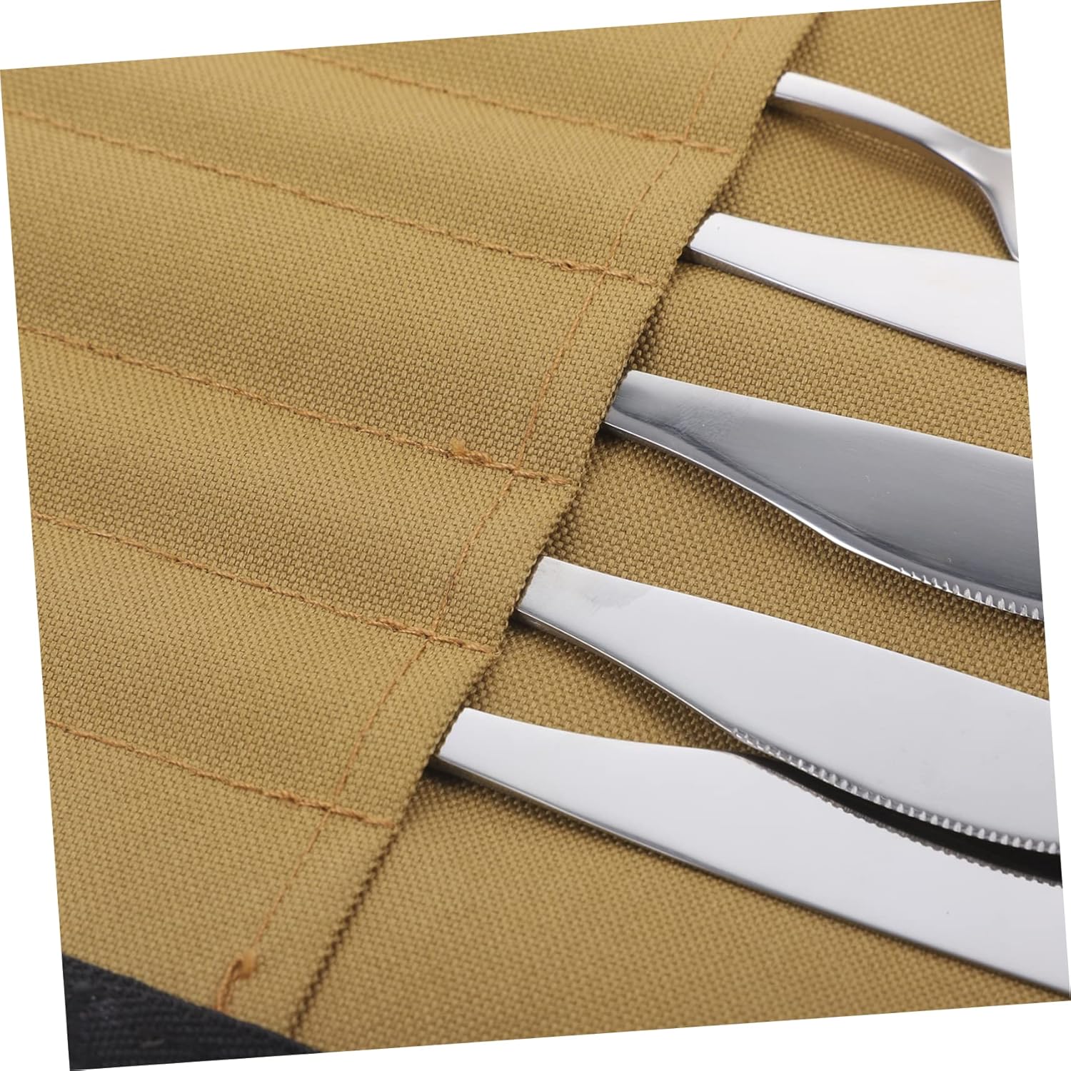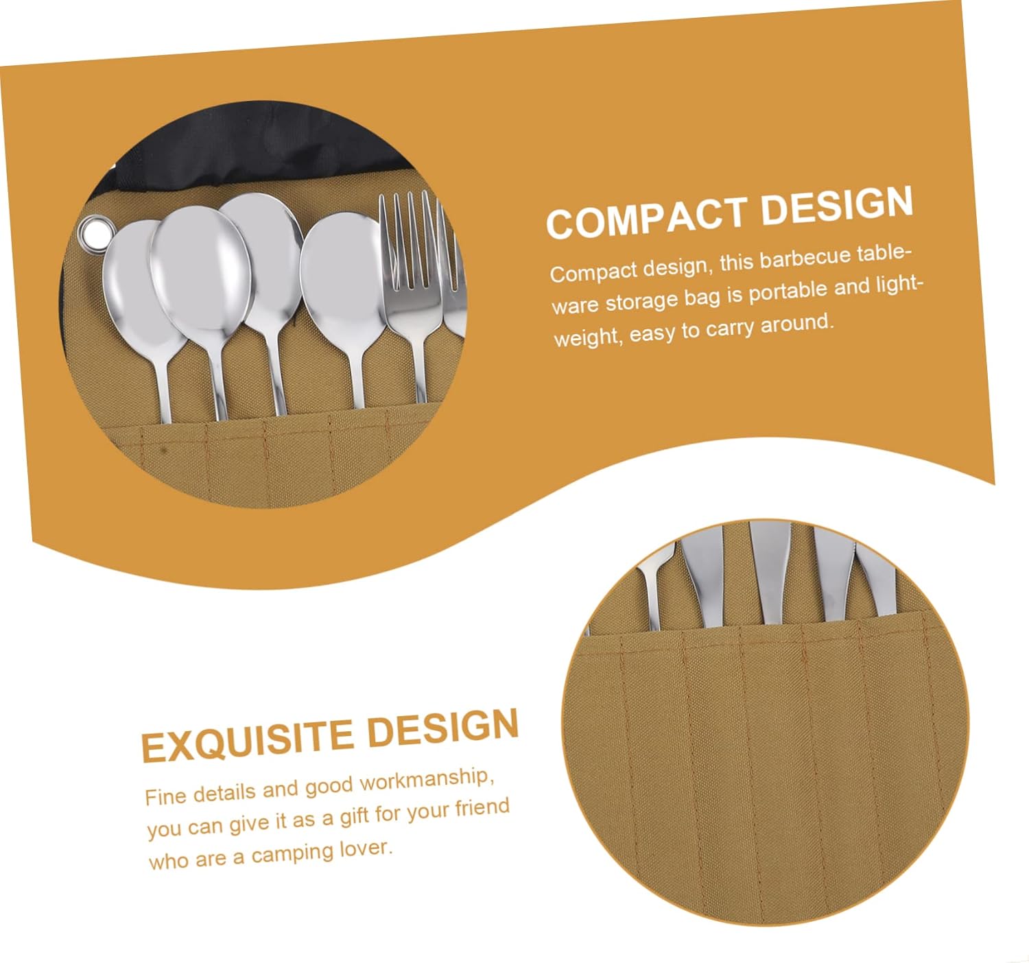 Package List 1 x Storage Bag 4 x Spoons 4 x Forks 4 x Cutters Features -Material:Stainless Steel, Nylon camping utensil holder - Color: Clay Color(Bag), Silver(Tableware) picnic tableware hanging bag - Size: 20.60X2.40X2.40cm/8.10X0.94X0.94in cutlery storage bag camping - Size: 21.80X1.90X1.90cm/8.57X0.75X0.75in cutlery storage bag - Size: 20.60X2.40X2.00cm/8.10X0.94X0.79in camp utensils bag - Size: 38.00X24.40X2.00cm/14.93X9.59X0.79in camping tableware carrying bag -Smooth surface makes this tableware set always , elegant enough for your table setting, making your meals into a good dining experience camping utensils bag. -With fine craftsmanship, the barbecue tableware set will not easy to wear and tear, very practical in use tableware storage bag. -This camping tableware bag will help you organize everything well, and the tableware could be easy found camping tableware storage bag. -Multi-function, and this set comes with all the basic pieces needed for serving cutlery pouch camping. -The dinnerware set and bag is great for school, office, outdoor picnic, fishing, camping, travel, etc outdoor cutlery bag.Goods Informationcamping tableware storage hanging bag It has fine texture, smooth surface and polishing treatment make these tableware keep luster and comfortable to touch.outdoor cutlery storage bag The camping tableware set and storage bag can be easily carried anywhere.portable pouch camping cutlery And the bag is lightweight and potable, very useful