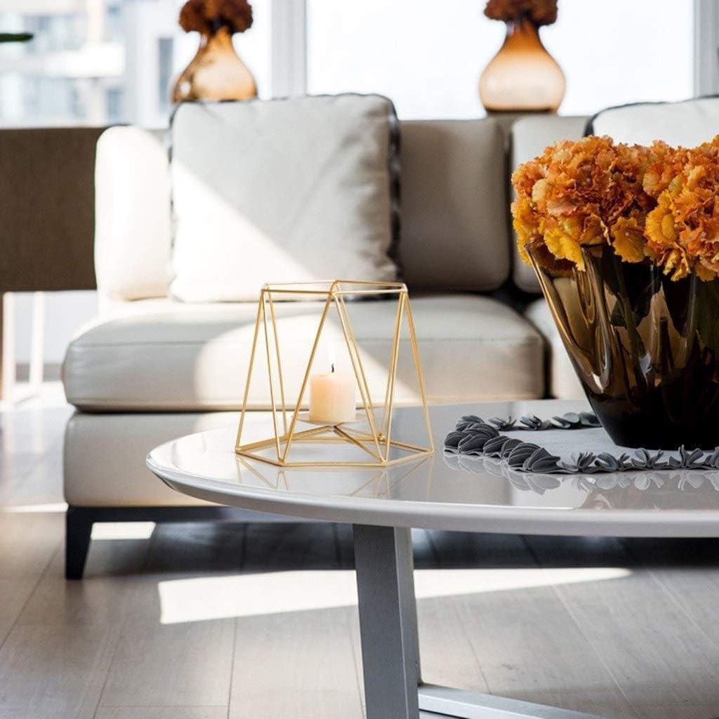 ✿This candlestick is made of metal and is retro and generous, giving you a new home atmosphere!✿ Material: metal.✿ Color: Gold.✿ Quantity: 1✿ Shape: European-style creative geometric candle holder.✿ Size: 13*15cm (5.1*5.9in).✿Applicable occasions: coffee table, dining table, living room, bedroom, clothing store, hotel, cafe.