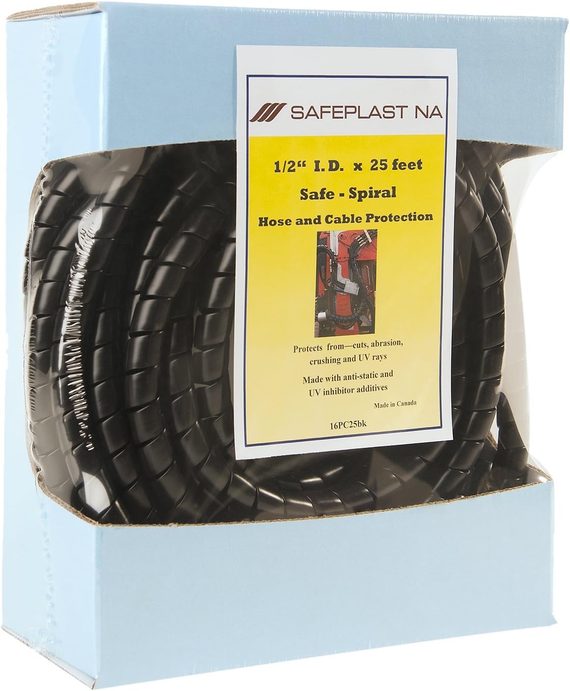 Prepackaged for easier storage, stocking or merchandising, Caplugs SPPC Series Safeplast Safe-Spiral Pre-Cuts 50PC10BK provide excellent abrasion resistance, protecting hydraulic and pneumatic hoses against hits and weather conditions, helping reduce machine downtime and extending the usable life of connections. They are also easy to install and use, with one size capable of being used for a large range of hose sizes. Offered in two different colors (black and yellow), availability of these hose protectors varies by spiral OD size, with pre-cut lengths going up to 25 feet. This specific model is black and has the following specifications: 2.0" OD x Six 10' Pre-Cut Lengths.The SPPC Series pre-cut hose protectors are constructed from high-density polyethylene (HD-PE), a lightweight thermoplastic polymer that tolerates acids, oils and solvents, and they are made with anti-static and UV-protection additives. They can withstand temperatures from -60°F (-51°C) to 175°F (79°C).Caplugs is your global plastic molding partner, with 75 years of experience and over 10+ industries served. We take pride in being the leader with a team that combines top quality and service with the widest offering of products and capabilities to solve all of our customers' product protection and component needs. Our extensive line of premium products serves a plethora of industries, from aviation to medical, general manufacturing and everything in-between. At Caplugs, we provide the broadest range of solutions and the highest quality parts right when you need them. Our teams work diligently to ensure consistent results, with more engineers on staff, processes for creative solutions and molding experts for reliable quality. We are driven daily by our commitment to provide unmatched service and innovative products that perform.
