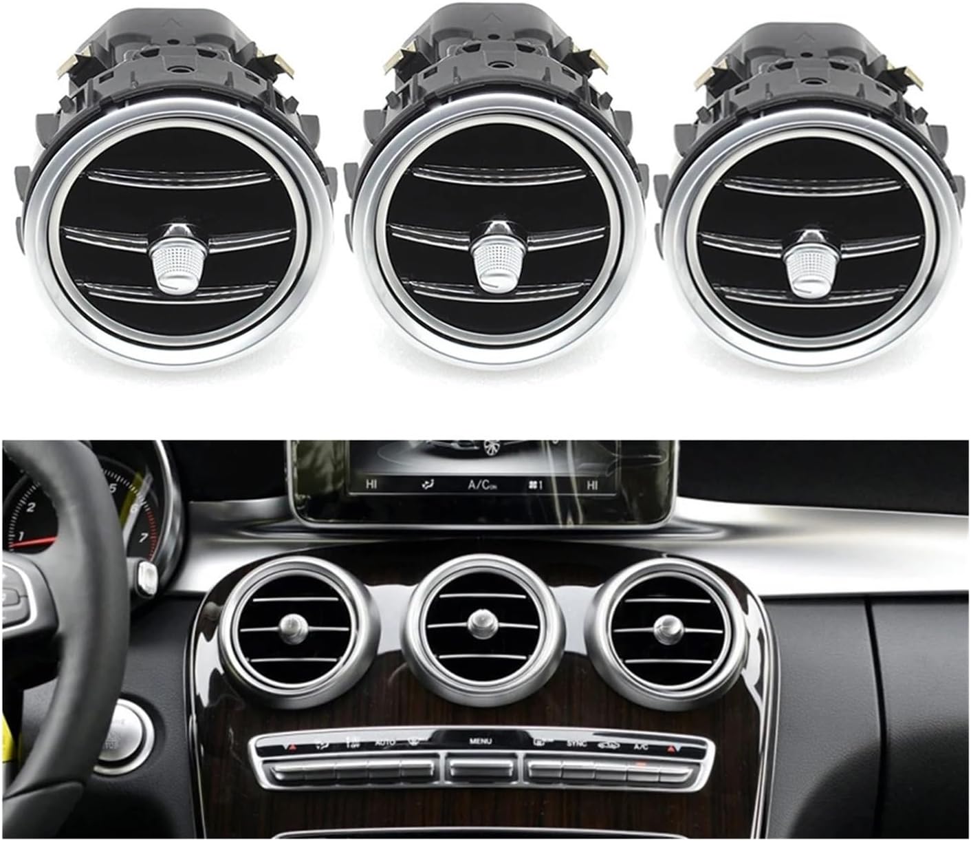 Compatible With Benz C Class W205 CLC Class W253 2015-2021Color : SilverMaterial Type : PC+ABSModel Year : 2015-2021The air-conditioning outlet components are made of high-quality materials, which are resistant to corrosion, dust, wear, heat and impact. The structure of vulnerable parts is upgraded, the thickness of the air outlet is strengthened, and the exquisite design is used to enhance the aesthetics of the car interior.If You Have Any Question, Contact Us And We Will Reply You Within 24 Hours. We Would Make Sure You Shop With Satisfaction.