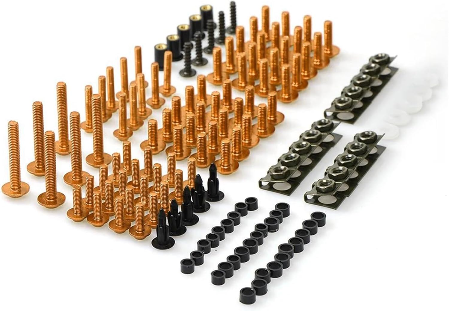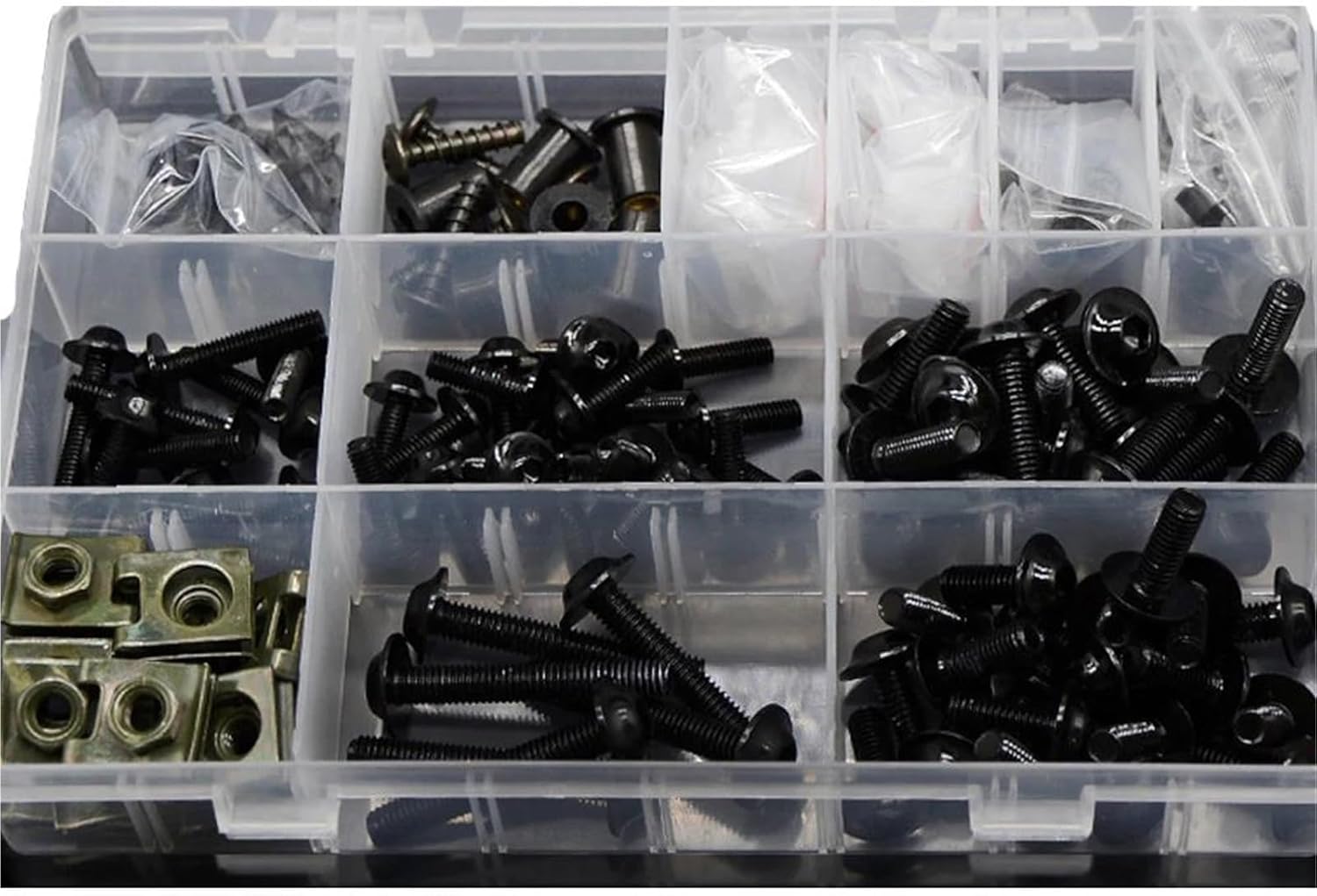 Specification:Item Type: Fastener & ClipModel Name: Car Retainer ClipsMaterial Type: PlasticsColour: blackType: Car ClipCar fixing clips are durable, not easy to break, and very strong.Easy to install quickly.Parts/Pieces List· Button Head Bolts· Truss Screws· Socket Head Screws· Washers & Shoulder Washers·Clips· Push Pins· Retainers· Grommets· Nuts, Lock Nuts, Weld Nuts, Speed NutsKit Includes:· Front Fender· Main Fairing (upper/mid/lower, right/left, v-panel, as required per model)Screws will make your look even cooler!