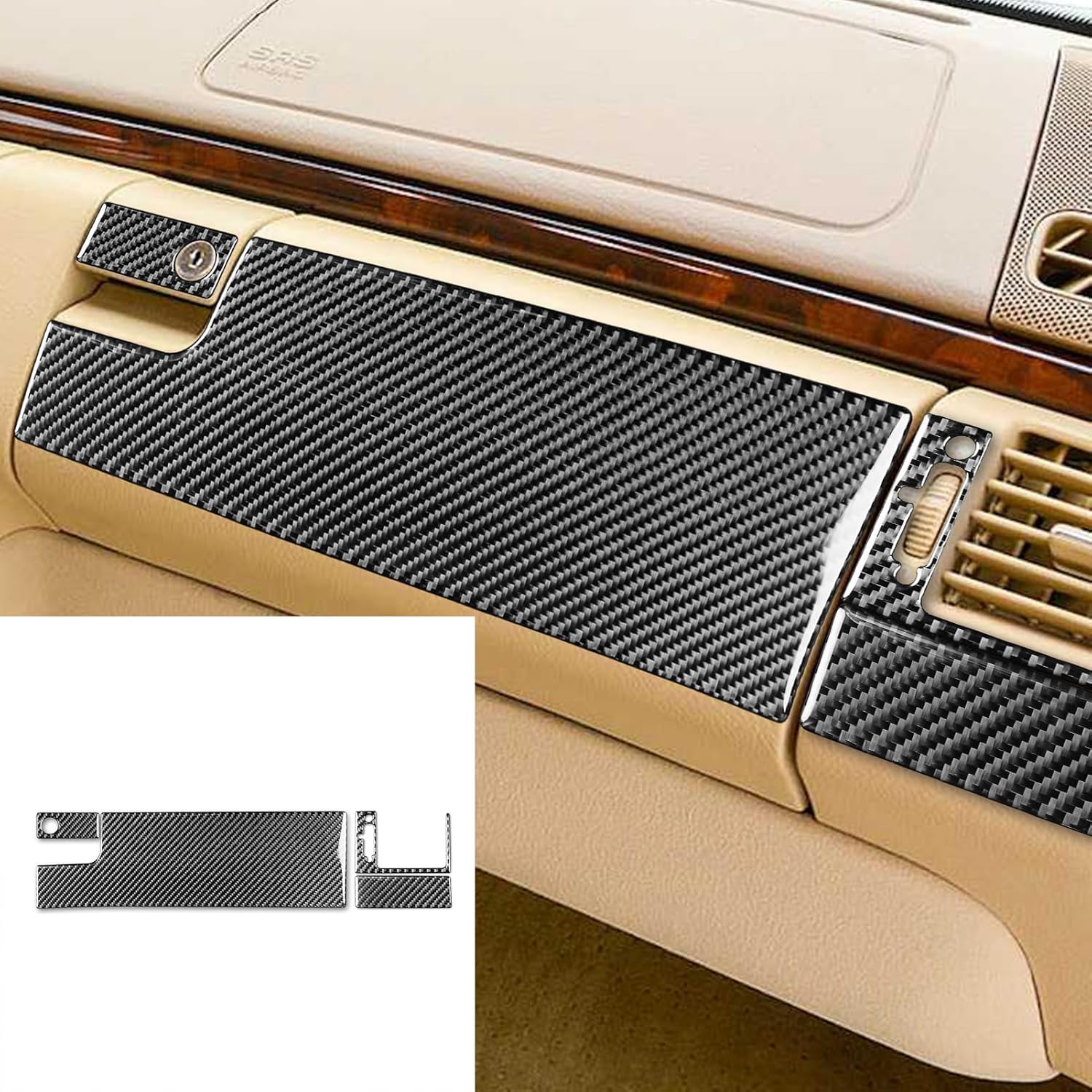 Specifically designed for Mercedes Benz E Class W210 1996 1997 1998 1999 2000 2001 2002 models with precise contour matching. Crafted from high-end carbon fiber material, it combines eco-friendliness with exceptional durability, featuring high-temperature resistance, wear-resistance and superior waterproof performance. The distinctive carbon fiber texture enhances luxurious aesthetics while protecting against collisions and scratches, skillfully covering existing door panel abrasions. Innovative traceless adhesive allows tool-free manual installation and removal without residue or paint damage. Its soft yet tough composition provides comprehensive protection against dirt, food stains and water marks, doubles as a decorative trim to showcase vehicle personality, achieving perfect harmony between functionality and aesthetics.