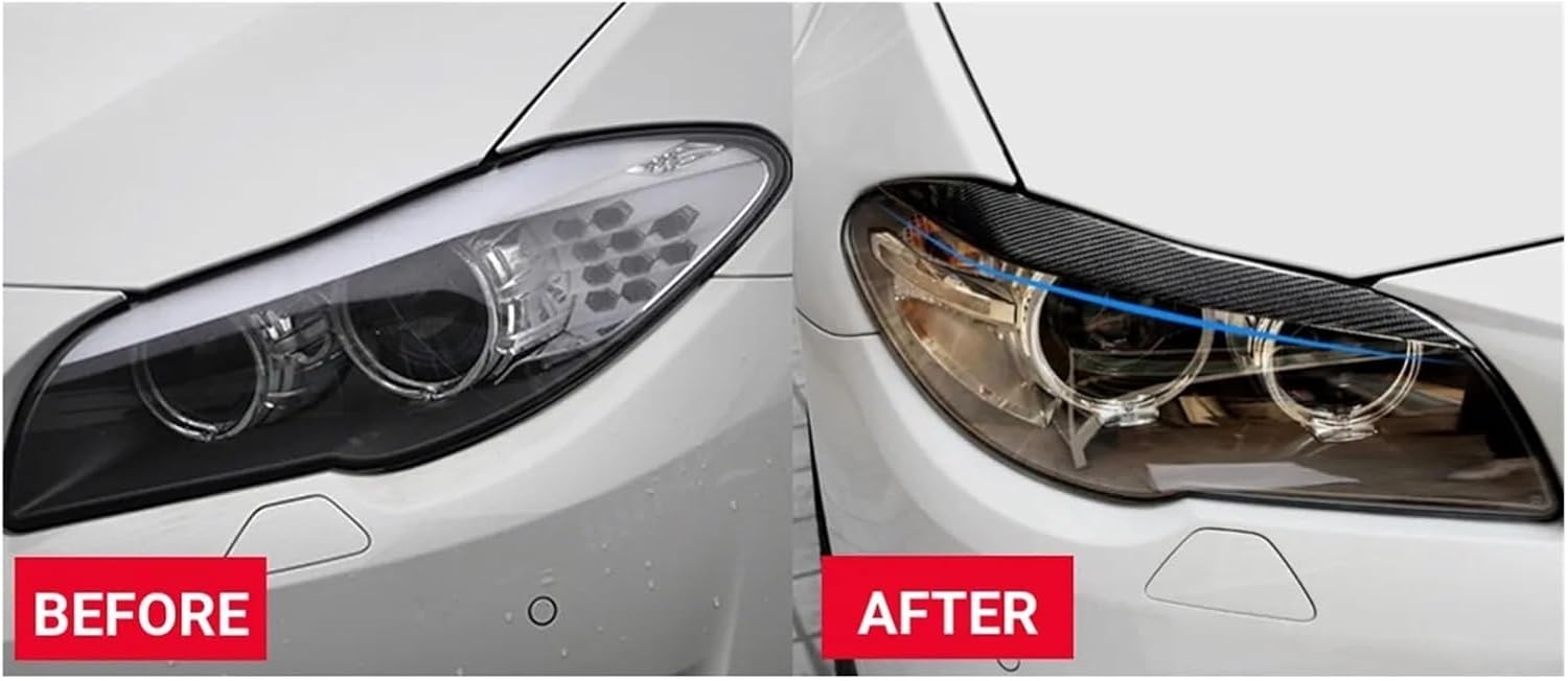 Eyebrows Eyelid Headlight Covers Compatible With BMW 5 Series F10 2010-2013Fitment:Compatible With BMW 5 Series F10 2010-2013(The Compatibility Is Just Compatible With Reference. Please Compare With Your One Before Purchasing!)Specification :Product Name:Headlight Eyebrow Material : PlasticColor: Glossy Black/ Carbon Fiber LookSize: About. 482x47mm/18.98''x1.85''Placement on vehicle : Front / Left / Right Installation:1. Clean & Dry The Surface On The Position Of Car2 Compare & Check The Install Position3 Adhesive Tape To Help Install.4. Press Gently.5. Fixed And Held On.Package includes: 2 x Headlight EyebrowNote:1.We provide clear pictures, measurements where possible. Please check as much as possible to make sure the item is the one that you need.2. Please allow 0.5-1 inch difference due to manual measurement.(1inch=2.54cm)Welcome to my store, it's an honor to serve you. We have a wide selection of automotive parts for you to choose from.