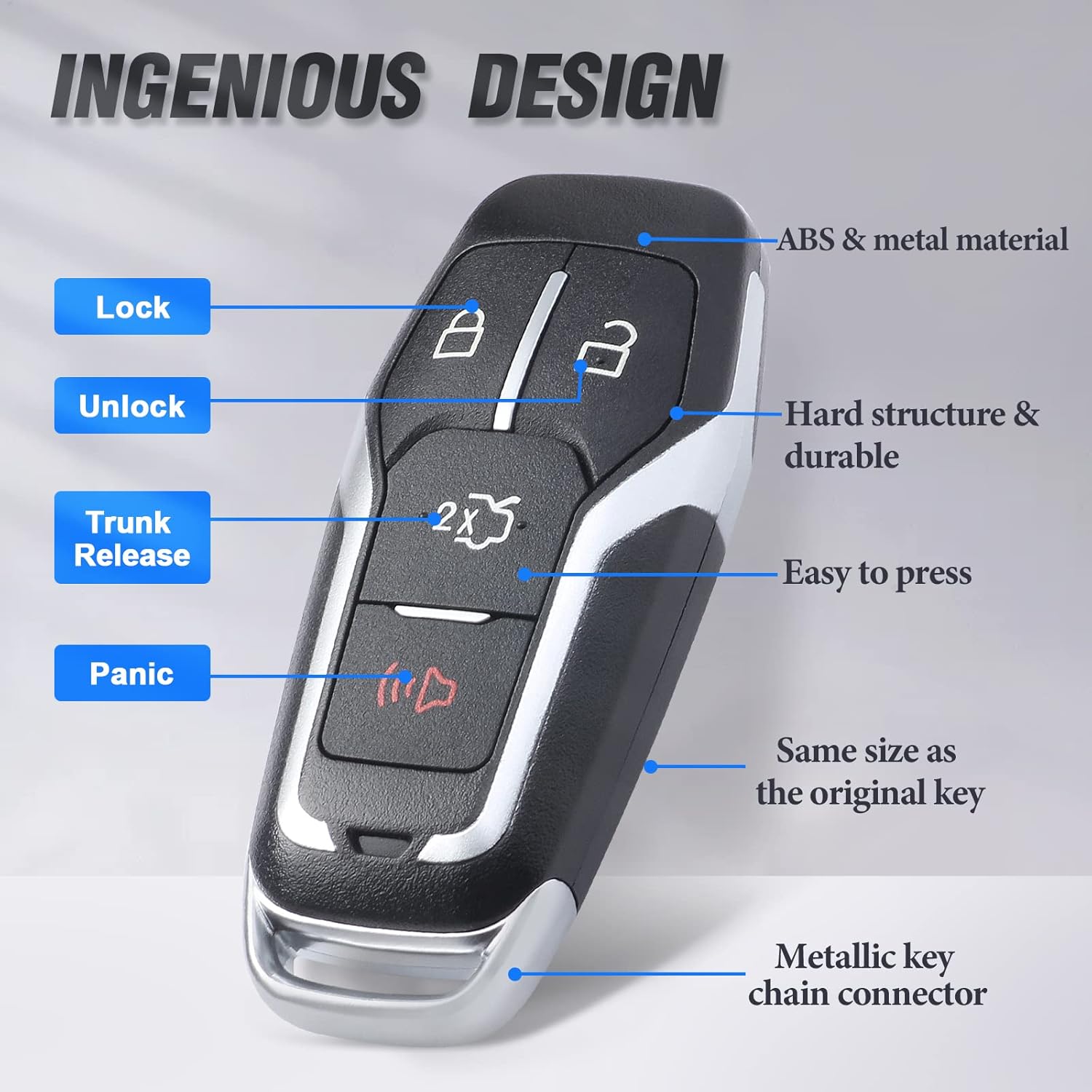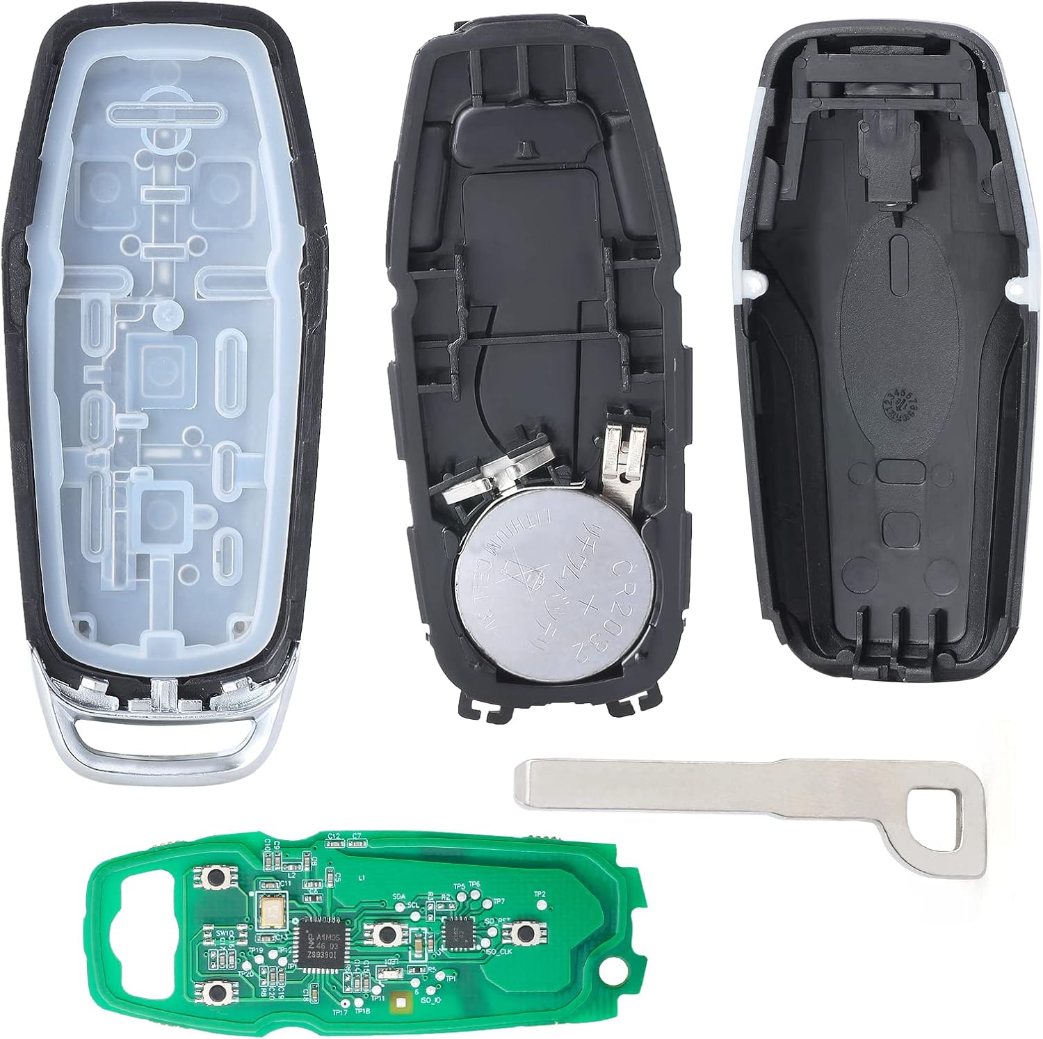for FCC ID: M3N-A2C31243800 IC:7812A-A2C31243800 for P/N:164-R8109 Battery:CR2032 Buttons:Lock,Unlock,Trunk Release,Panic Chip:ID49 Keyblank:HU101 Frequency: 315 MHz Color:Mainly black and silver Compatible with the following vehicles: for Ford Fusion 2015 2016 for Ford Edge 2016 2017 for Ford Explorer 2016 2017for Ford Mustang 2015-2017 Package Includes: 1 x new replacement key fob. Note: 1.The product is an aftermarket item without logo or part number on the back . If your key style (shape,buttons,blade) is different,please don't order. 2.Please find parameters on your original remote.Please compare carefully before placing an order. 3.Please make sure the remote programming can work on your vehicle before asking the locksmith to cut the key.