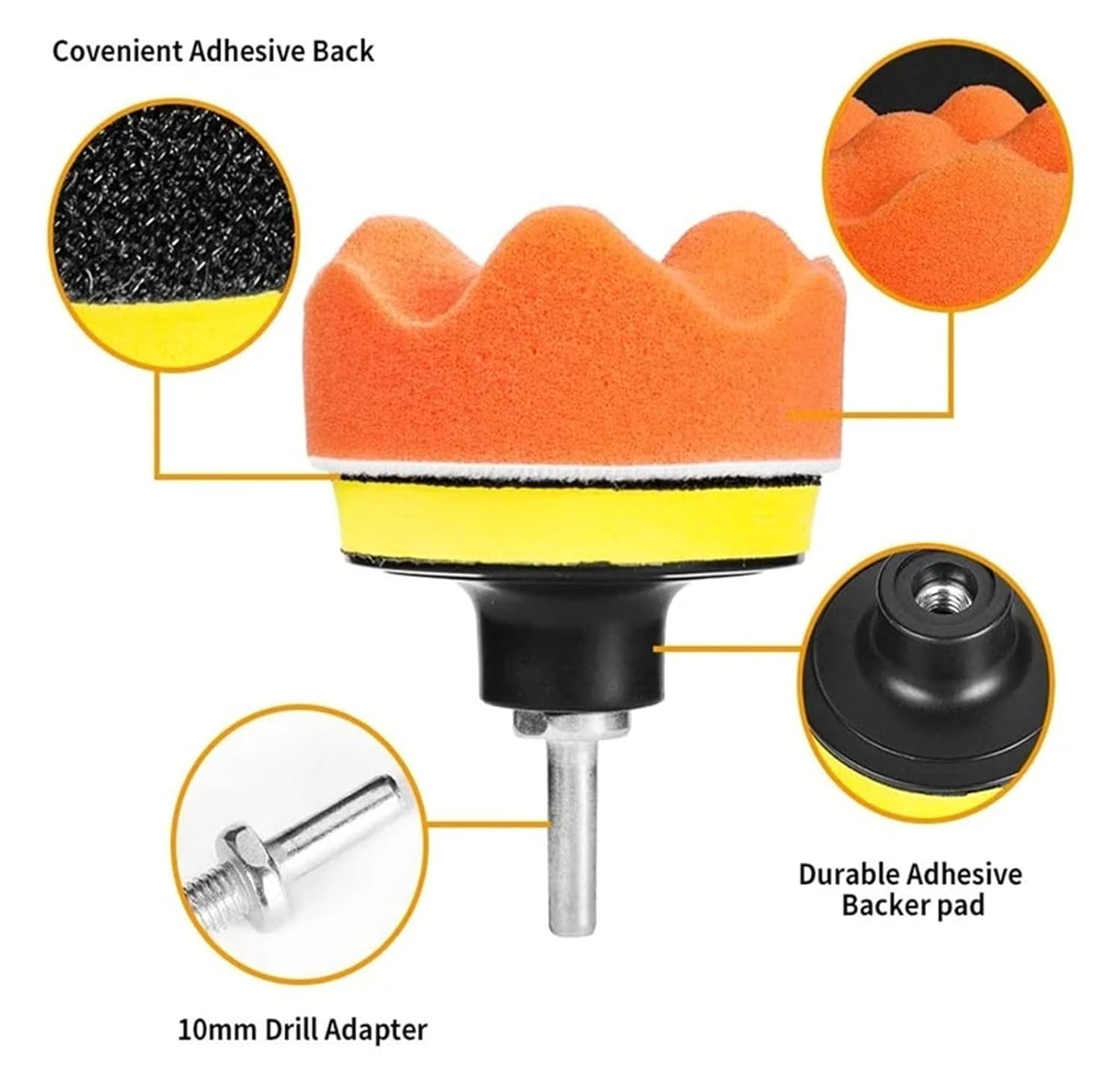 Buffing WheelsQuantity:5pcs /set or 11pcs /set or 22pcs /set or 39 pcs/setPacking list:5pcs/set: 3inch11pcs /set : 3inch22pcs /set : 3inch39pcs/set30pcs Sponge Polishing Pads(5-5" & 2533pcs Drill Adapter15 233pcs Suction Cup15 & 233pcs Woolen Buffer15 23Scope of applicationwaxing polishing sealing glazeSeries:Waxing setAperture: M10