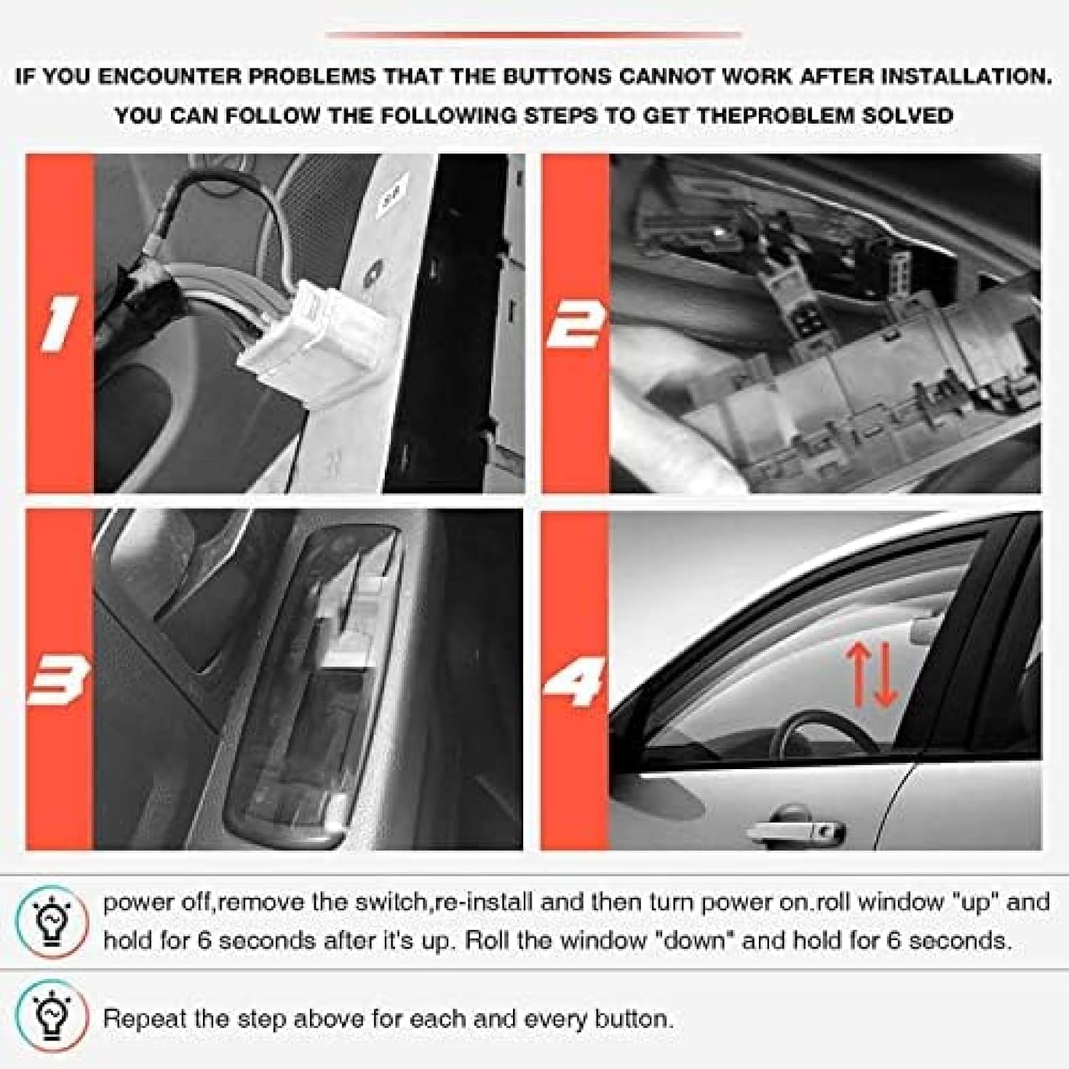 DescriptionFor 4Runner 2003-2005 84820-35090 8482035090 Power Window Master SwitchMaterial:ABSTypes:Window Control SwitchColor:As ShownHow to Replace a Faulty Window Switch:Step 1:Firstly confirm your vehicle must be cutting off the power.Step 2: Use a skid to pry the old switch out carefully.Step 3: Pull out the plug from the old switch.Step 4:Connect the new switch to the wiring harness.Step 5:install it into the bezel bracket.!!!Attention:The only way to be sure that the part will fit your vehicle is to check your original part number.please ensure suitability carefully before purchase, thanks.If you have any problem in our products, please feel free to contact us. We will try our best to give you a satisfied answer within 24 Hours!