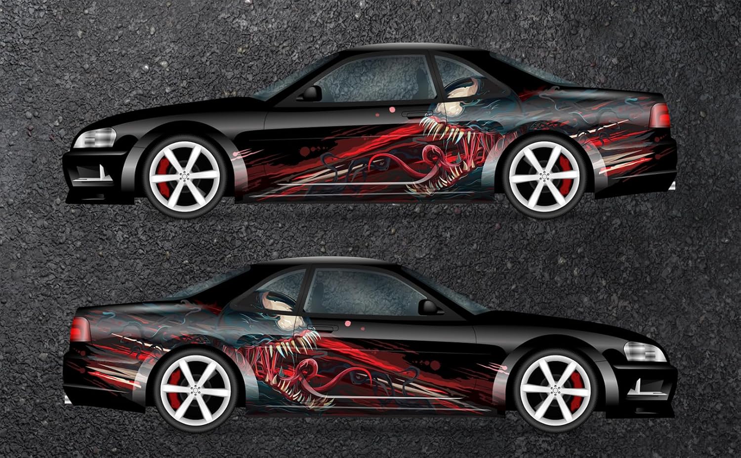 Car Side Wrap. Set includes stickers for both sides of the car. It's custom vector design and it can be applied for any car without lost of quality. We can change color in this design. Attention!!! We produce it specially for your car. So we can't start production without information about model of your car. Please provide model of your car and production year. If you don't do it in 3 days, it means you decided to cancel the order and cancellation will be done. We use vinyl with long time durability. Stickers are laminated for image protection. We use only vector images for printing and professional equipment for production. This decal can be applied to any clean and smooth surface. We make decals specially for orders. We ship all packages with tracking numbers. Decals is packed in cardboard tubes, so you will get product in safe We don't accept returns for car side wraps, because we make it specially for your model. Each item will has custom size for exact car and we can't use it for other cars after return.