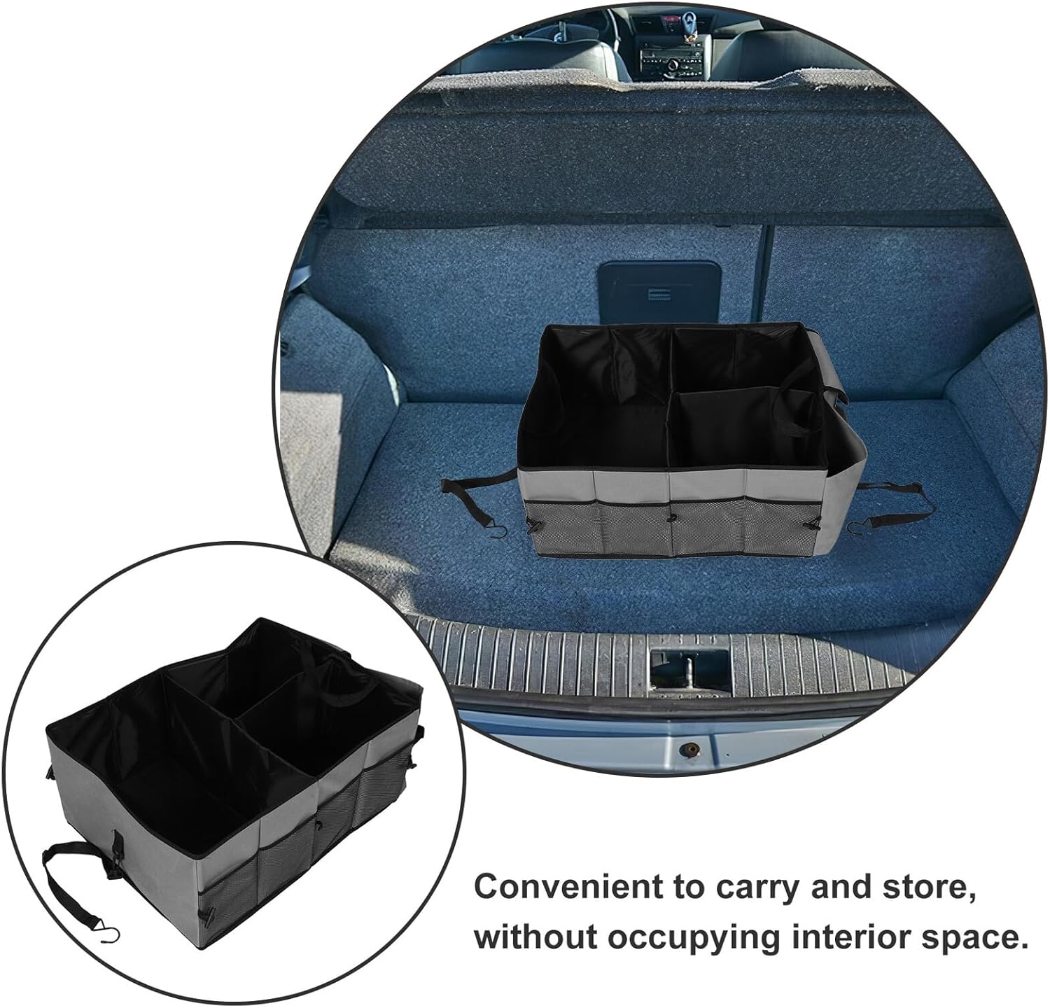 Package List 1 Trunk Organizer Characteristics -Color:Grey -Size:58.00X43.00X27.00cm/22.79X16.90X10.61in -Material:Polyester -Product Info:Car storage box -The convenient foldable design allows for easy transportation and storage when not in use suv storage organizer. -Car organizer is versatile storage solution designed specifically for your car trunk car storage trunk organizer. -Multi-compartment car organizer provides ample space for your car essentials, keeping them organized and easily accessible suv cargo organizer. -Made from polyester materials, this storage organizer is not only easy to clean but also built to withstand the rigorous of everyday use. -The stylish color of this storage organizer perfectly complements your car interior, adding a touch of sophistication.Goods Descriptionsuv organizer trunk storage It provides ample storage space for organizing your belongings and keeping your car tidy.cargo organizer for suv With its foldable design, easy to store when not in use, without taking up much space in your car.trunk cargo organizer The trunk organizer for suv is a versatile and practical accessory for your car