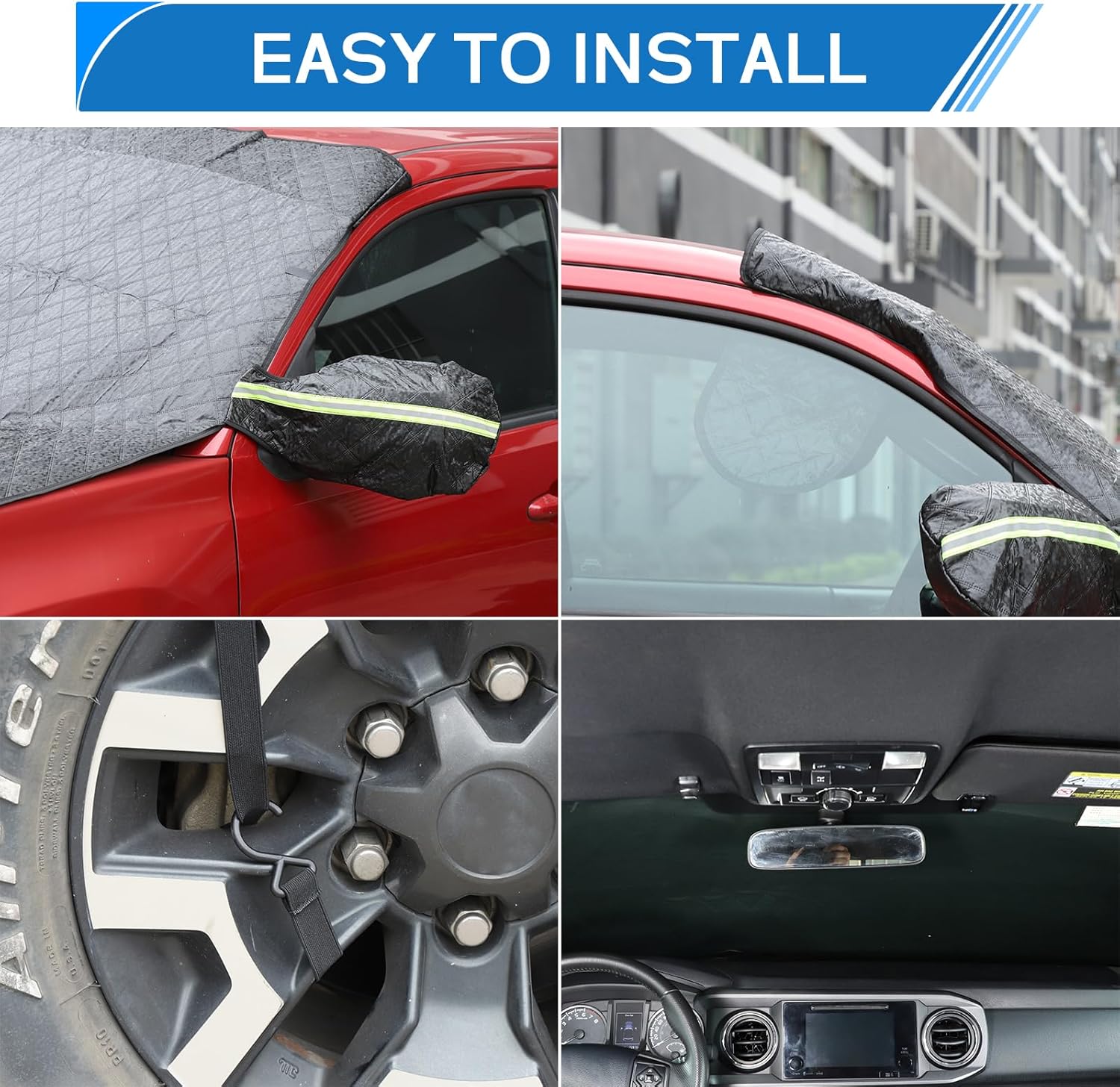 Car Windshield Cover for Ice and Snow | Winter Windshield Covers for Ice Removal | Summer shade Winter snow protection Car Accessories for Windshield Protection Car Windshield Snow Cover, Ice Removal Sun Shade for Winter Protection, Fit for 2016 2017 2018 2019 2020 2021 2022 2023 2024 2025 Toyota Tacoma, SPECIFICATION: Windshield Snow Ice Cover Protects Windshield and Wipers from Rain and snow in winter or sun exposure in summer Windproof Sunshade Cover Suitable for all weather, can be a sunshade in summer, and can be used to prevent snow accumulation in winter, In autumn, prevent deciduous fruit insects and other things that are difficult to remove, Spring windproof sand. Applicable Toyota Tacoma 2016 2017 2018 2019 2020 2021 2022 2023 2024 2025, Material: 4 layers (aluminum foil, spunlaced cotton, warp weft cotton and white lining) Package: 1 x Car Front Windshield Cover If you can't install it, you can contact us, we will give you the best service and guide the installation.