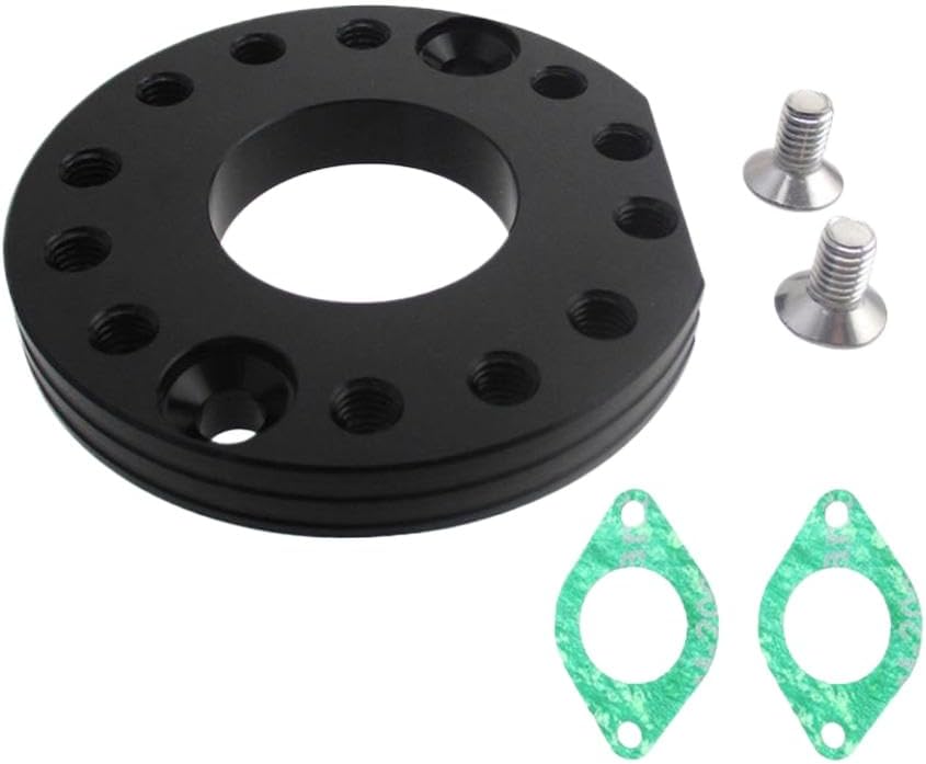 DJ Motor carburetor manifold adjuster spinner plate adaptor with gasket for ZS190 Anima 190cc 212cc engines.This adaptor is designed to connect the carburetor to the intake manifold, a secure fit and proper alignment.It includes a gasket to help maintain an airtight seal between components.The unit is built for compatibility with specified engine models and supports performance in small engine applications. This product is not affiliated with the manufacturer.Brand mentions are used for compatibility indication.