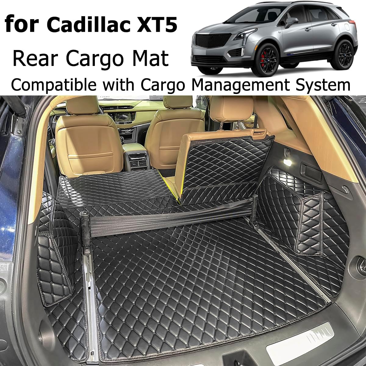 7DEEKEI Cargo Mat Compatible with 2017-2026 Cadillac XT5 (Cargo Management System) Trunk Mat and Rear Backrest Mat Cargo Liners All Weather