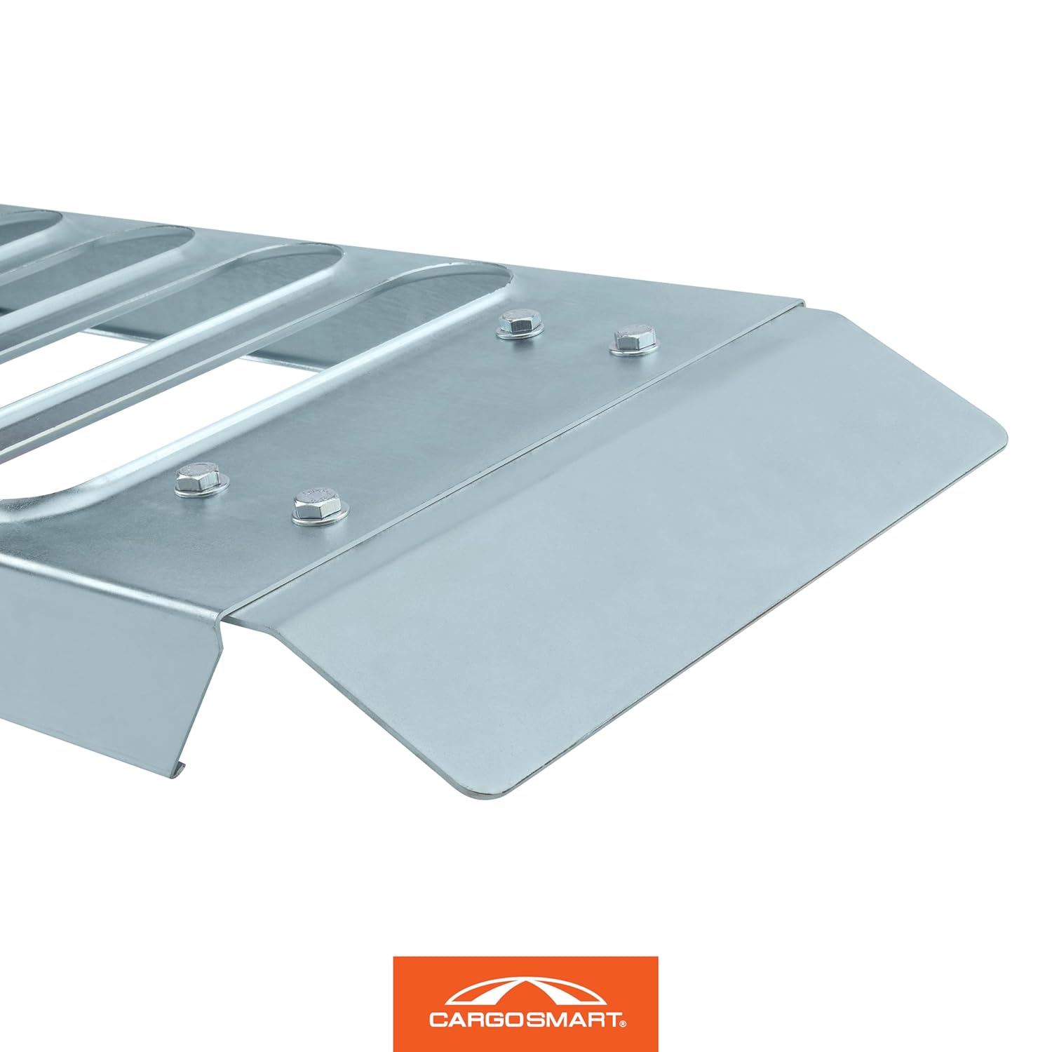 Safely loading and unloading your cargo and equipment is extremely important, and Steel Tri-Fold Ramp offers the best and most efficient way to do so. You can trust this 9” W x 72” L ramp for safely and easily loading and unloading push mowers, garden tillers, appliances and more. The distributed load per ramp capacity is 500 lb., giving you peace of mind that your equipment is secure. Adjustable safety straps are included, ensuring your equipment stays safe during loading and unloading.In addition to safety, rest assured that CargoSmart ramps will make the loading and unloading experience quick, easy and stress-free. The cut out pattern provides smooth continuous high traction surface, and the steel construction means you can be confident in your ability to safely load and unload your equipment time and time again. Plus, storing a ramp has never been easier. The compact, tri-fold design is a space saving one, so storage is never an issue. It can even fit into standard truck bed tool boxes, and includes a handle for easy carrying.Our mission at CargoSmart is to engineer cargo management solutions to safely and securely get you where you’re going. Our range of bike and sports racks, cargo carriers, ramps, and organizational solutions work as hard as you do – on the job site or on your next outdoor adventure. CargoSmart products are designed with innovative features that allow you to get the most out of your activities and passions.