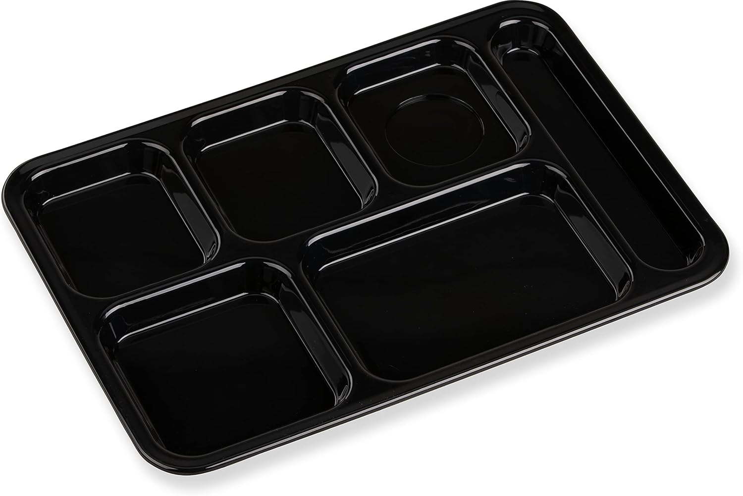 Introducing our Right-Hand 6-Compartment ABS Tray, designed to elevate your serving experience with its thoughtful design and durable construction. Measuring 10" x 14", this tray is the perfect size for serving a variety of meals and snacks. Available in five attractive colors, you can choose the option that best suits your establishment's aesthetic. This tray offers a greater variety of serving combinations with its six compartments, including three smaller upper compartments, two larger lower compartments, and a convenient flatware holder on the right or left side. Whether you're serving a complete meal with sides or a selection of snacks, this tray has you covered. The textured compartment bottoms not only increase scratch resistance but also help maintain the tray's daily appearance, ensuring it looks great even after repeated use. Additionally, this tray is designed to hold "Type A" lunch, providing a standardized and efficient serving solution for your cafeteria or food service operation. Upgrade your serving capabilities with our Right-Hand 6-Compartment ABS Tray, the perfect choice for enhancing efficiency and presentation in any dining environment.