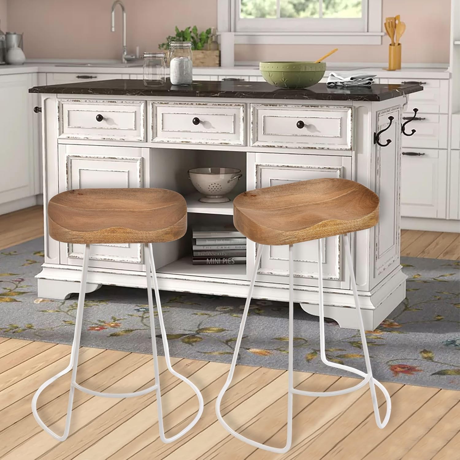 Our Reid 25 Inch Counter Stool is a sublime stool that fuses our thick solid mango wood seat with a rustic iron black metal frame. Crafted from a solid mango wood seat set on a black metal sled legs with an attached footrest, this piece is perfect for an on-trend mixed material look. And thanks to their backless saddle-style seats, these stools can be drawn up directly under your surfaces for a space-saving touch.