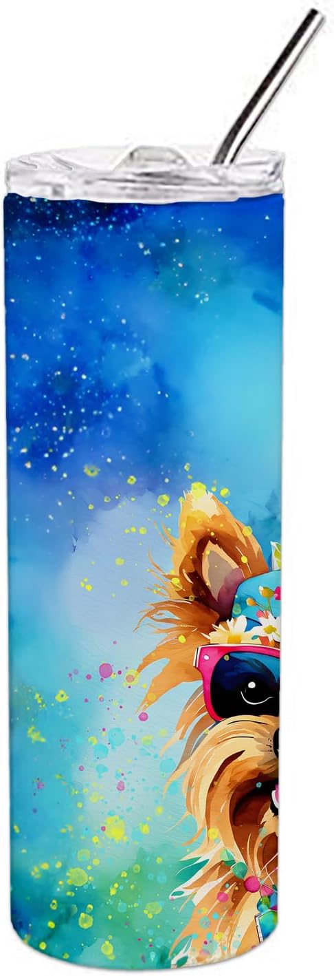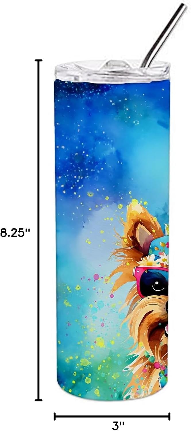 Stainless Steel Skinny Tumbler featuring breed specific Yorkshire Terrier artwork. Elevate your hydration experience with our Decorative Stainless Steel 20 oz Skinny Tumbler from Caroline's Treasures. This vacuum-insulated, double-walled travel mug is designed to keep your beverages hot or cold for prolonged periods, making it perfect for your coffee, tea, or cocktails. Its sleek and easy-to-grasp design, complemented by the vibrant, top-to-bottom artwork, makes it a stylish accessory for both men and women. Equipped with a secure, slide-open lid, you can enjoy your drinks without worrying about spills, while the included reusable metal straw contributes to reducing plastic use and promoting sustainability. Crafted with quality stainless steel, the tumbler is 100% BPA and Phthalate free, ensuring a safe, non-toxic experience with every sip. Not just functional, this skinny tumbler, complete with gift box, serves as a thoughtful gift for women, mothers, or any loved one. Enjoy your favorite beverages on the go in style, while making a positive impact on the environment. Remember, it's not just a drinkware, it's a lifestyle accessory! Please note: For optimum longevity, hand washing is recommended.