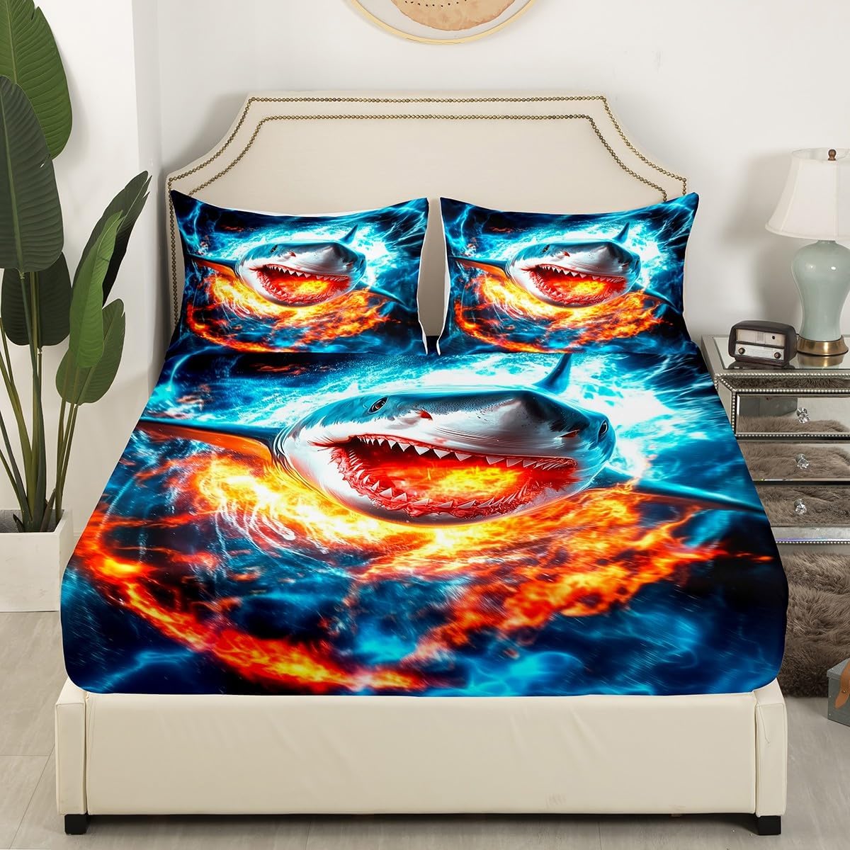 Package Include:1 x fitted sheet,2 x Pillowcases. Fitted sheet set pattern bedding set, simply decorating your rooms any time you want, bringing you fresh feel for year round use. Made from polyester,the sheet set offers long lasting strength,anatural resistance to shrinking and a noticeably soft hand feel. Size Information: Twin size : 1 Fitted Sheet 39"W x 75"L x 16"H ,99 x 190 x 41cm , 1 pillowcase 20" x 30", 51x75cm . Full size : 1 Fitted Sheet 54"W x 75"L x 16"H ,137 x 191x 41cm ,2 pillowcases 20" x 30", 51 x 75cm . Queen size : 1 Fitted Sheet 60"W x 80"L x 16"H ,152 x 203x 41cm ,2 pillowcases 20" x 30", 51 x 75cm . Personalize your bedroom: Beautiful design and colorful print, makes your bedroom unique and brings you a wonderful dream. Washing instructions: Machine wash separately in cold water,hang dry, do not bleach. Occasion: The soft Fitted Sheet bedding sets designed for Children ,Adult, Men, Women, Teens. This Fitted Sheet set is also suitable for full seasons, Spring, Summer, Autumn and Winter. Attention: Due to manual measurement, there may be an error of 1-3 centimeters. Due to the light and screen setting difference, the item's color may be slightly different from the pictures.