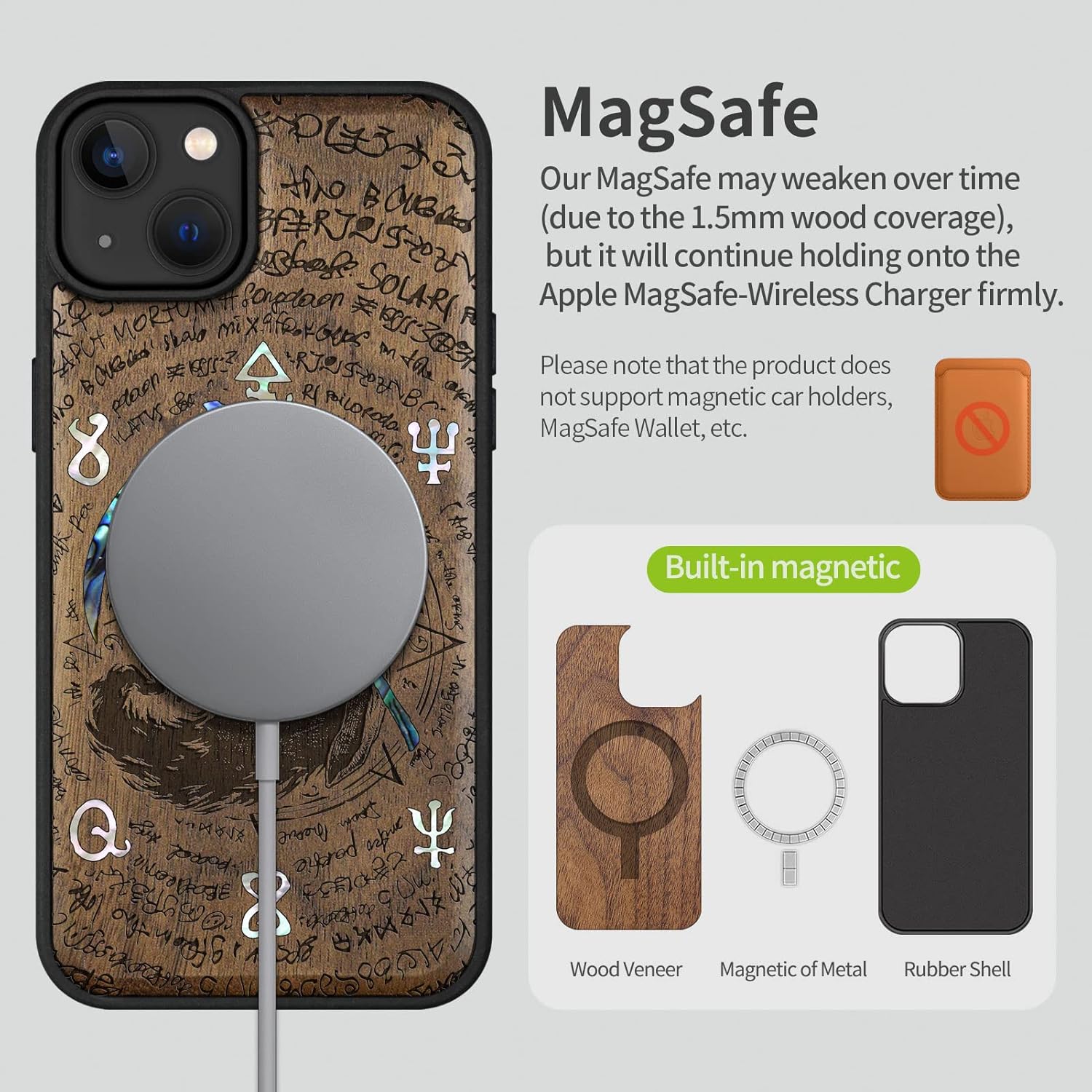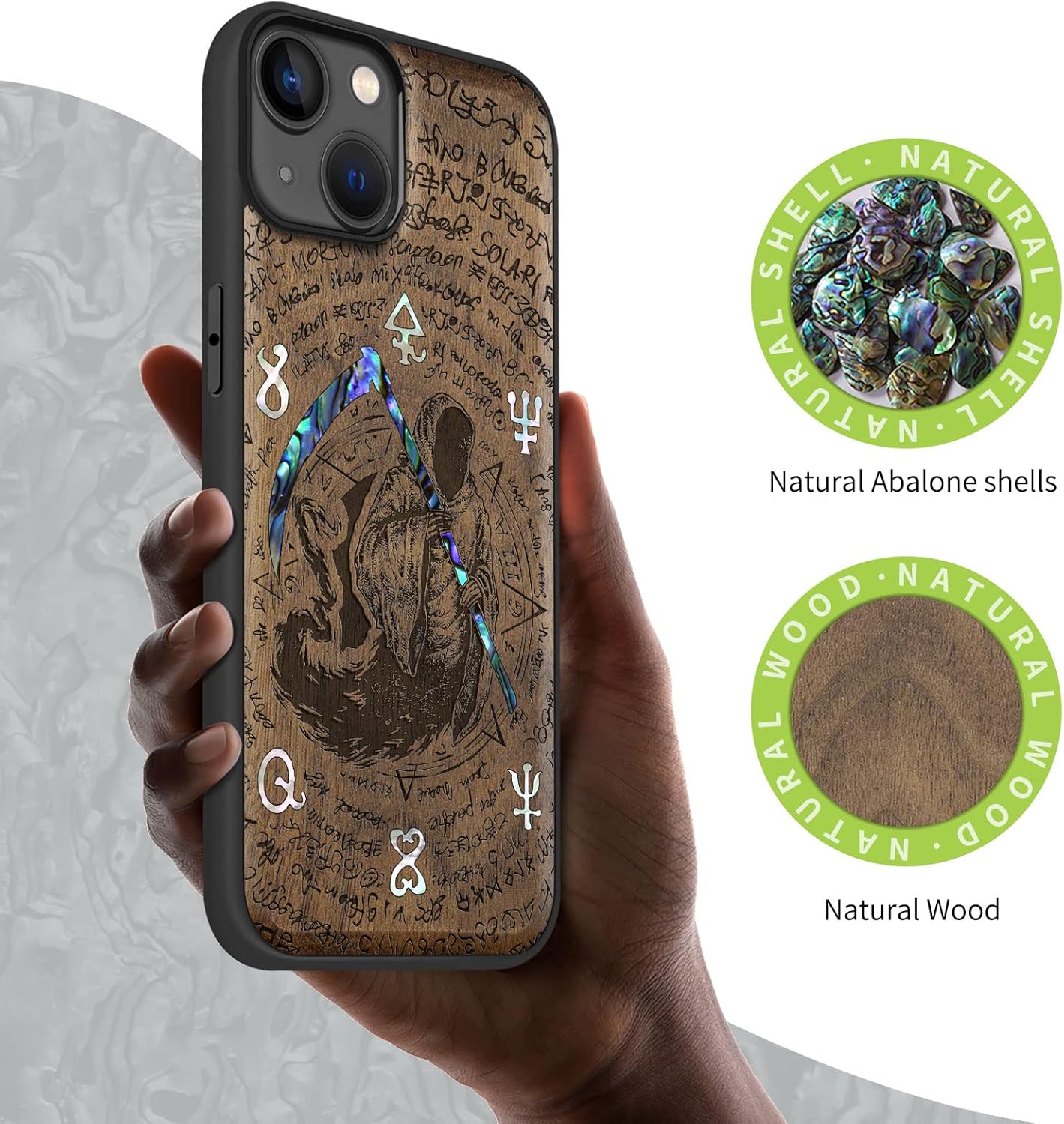 | Additional Features | The unique solid wood keeps the palm dry and prevents fingerprints from sticking to the surface of the case, keeping it clean and elegant., Vibrant design: It brings nature to life without adding too much complexity., wood micro-engraving, and shell inlay technology. |