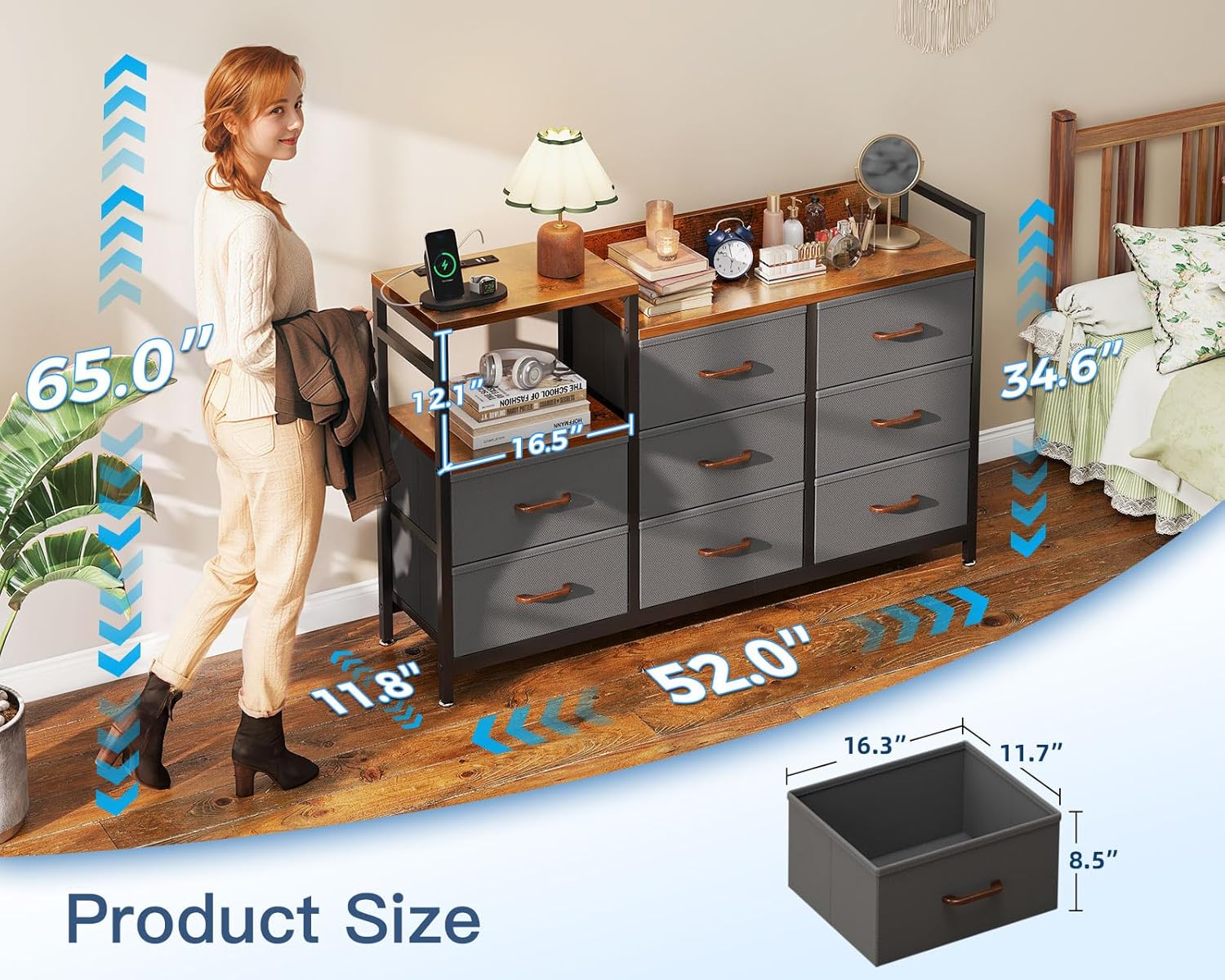 | Size | 11.8"D x 52"W x 34.7"H (8 Drawers) |