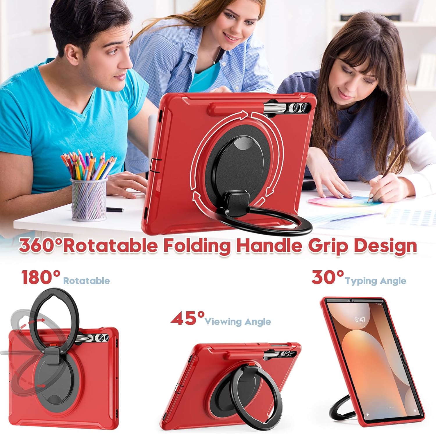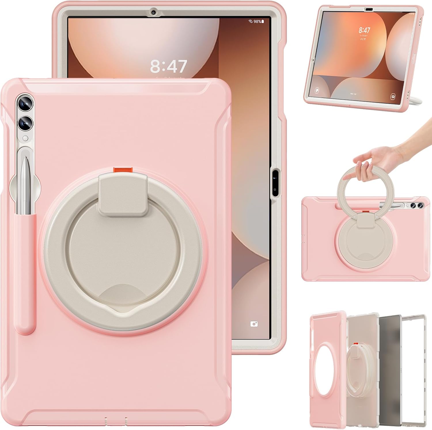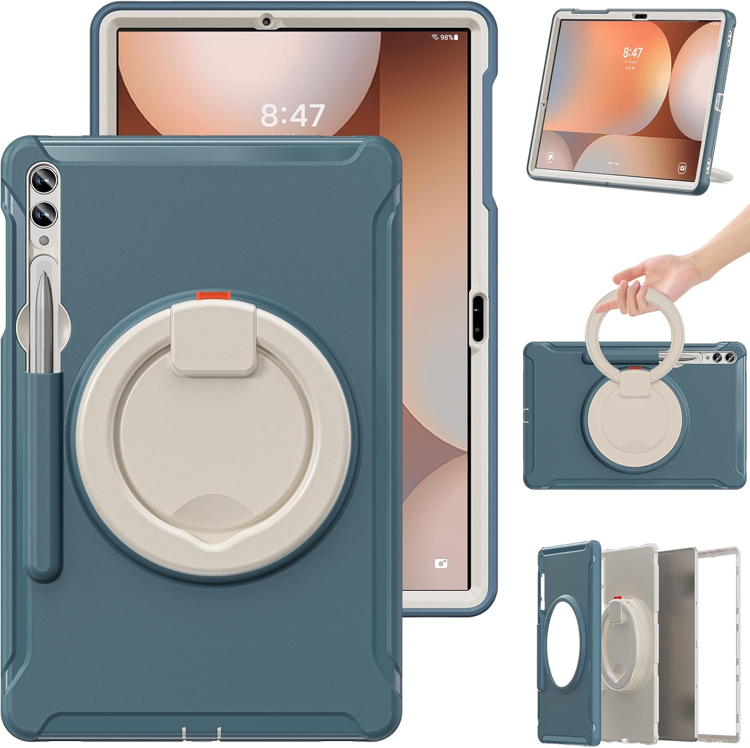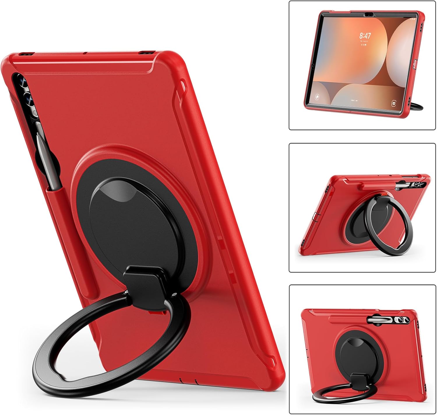 Hybrid Shockproof Rugged Cover Compatible with Samsung Galaxy Tab S10 Plus/ Tab S10+ 5G SM-X820 X826B 12.4 inch 2024, [Built in Pen Holder & Kickstand] Heavy Duty Shockproof Full Body Protective Cover Compatible with Samsung Galaxy Tab S10+ 2024 (Models: SM-X820/X826B) Features: The 3-in-1 rugged tablet case provides protection and keeps your tablet safe. Edges of the camera and screen are raised, to effectively prevent being scratched or cracked during daily use. Pen Holder will store your S Pen securely with our case on 360 Rotating Kickstand and Handle, Built-in Kickstand,Viewing angle with best angle of view,With Rotating Ring Grip,convenient for holding and carrying around. Full access to all ports, buttons, and cameras without the need to remove the case. Easy to install and remove Package Includes: 1 x Case