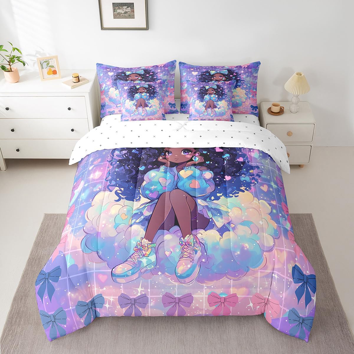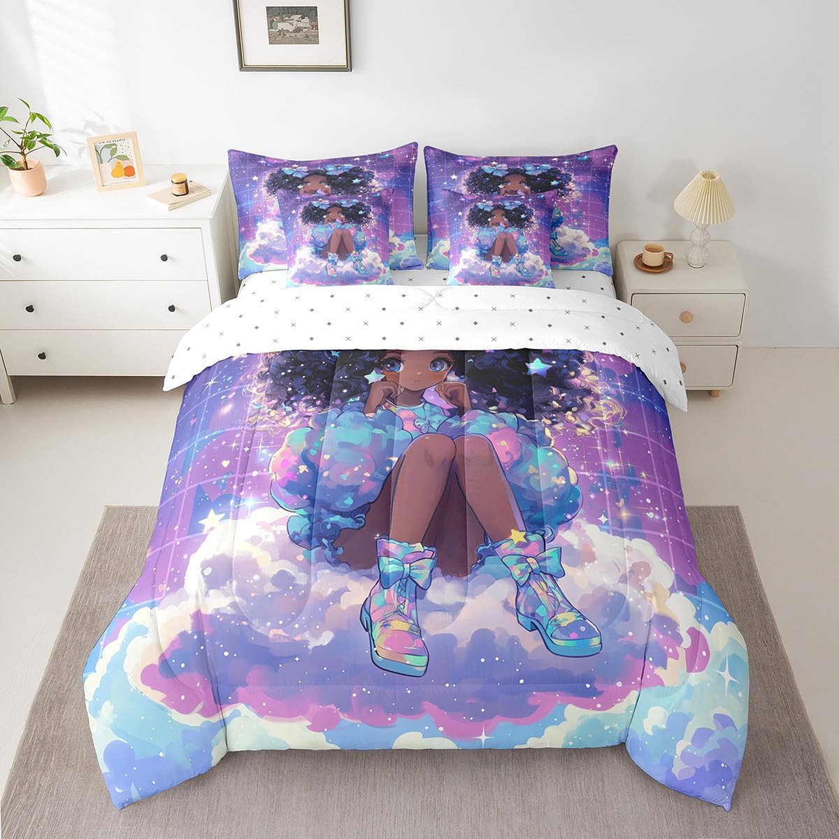 Welcome to our store. Size information: Twin size: 1 Comforter 68"W x 90"L and 1 Fitted Sheet 39"W x 75"L x 16"H and 1 Flat Sheet 67"W x 96"L and 2 Pillowcases 20" x 30" and 2 Throw Pillow Covers 18" x 18" . Full size: 1 Comforter 79"W x 90"L and 1 Fitted Sheet 55"W x 75"L x 16"H and 1 Flat Sheet 81"W x 96"L and 2 Pillowcases 20" x 30" and 2 Throw Pillow Covers 18" x 18" . Queen size: 1 Comforter 90"W x 90"L and 1 Fitted Sheet 60"W x 80"L x 16"H and 1 Flat Sheet 90"W x 102"L and 2 Pillowcases 20" x 30" and 2 Throw Pillow Covers 18" x 18" . King size: 1 Comforter 104"W x 90"L and 1 Fitted Sheet 78"W x 80"L x 16"H and 1 Flat Sheet 90"W x 106"L and 2 Pillowcases 20" x 36" and 2 Throw Pillow Covers 18" x 18" . Useful and practical: A luxurious product for homes,dorm rooms,hotels,guest rooms.Practical to use for being polyester, feels like cotton which is super soft and breathable.No chemicals used, no dye substance harming the health of you or your family. Unique design: Vivid Colors won't fade thanks to new 3d digital printing methods. These unique designs match well with various color palettes of your rugs, curtains, headboard, furniture, and all other decor accessories. Washing instructions: Machine wash it in cold water without bleach,and tumble dry on low heat to restore its freshness and appearance.