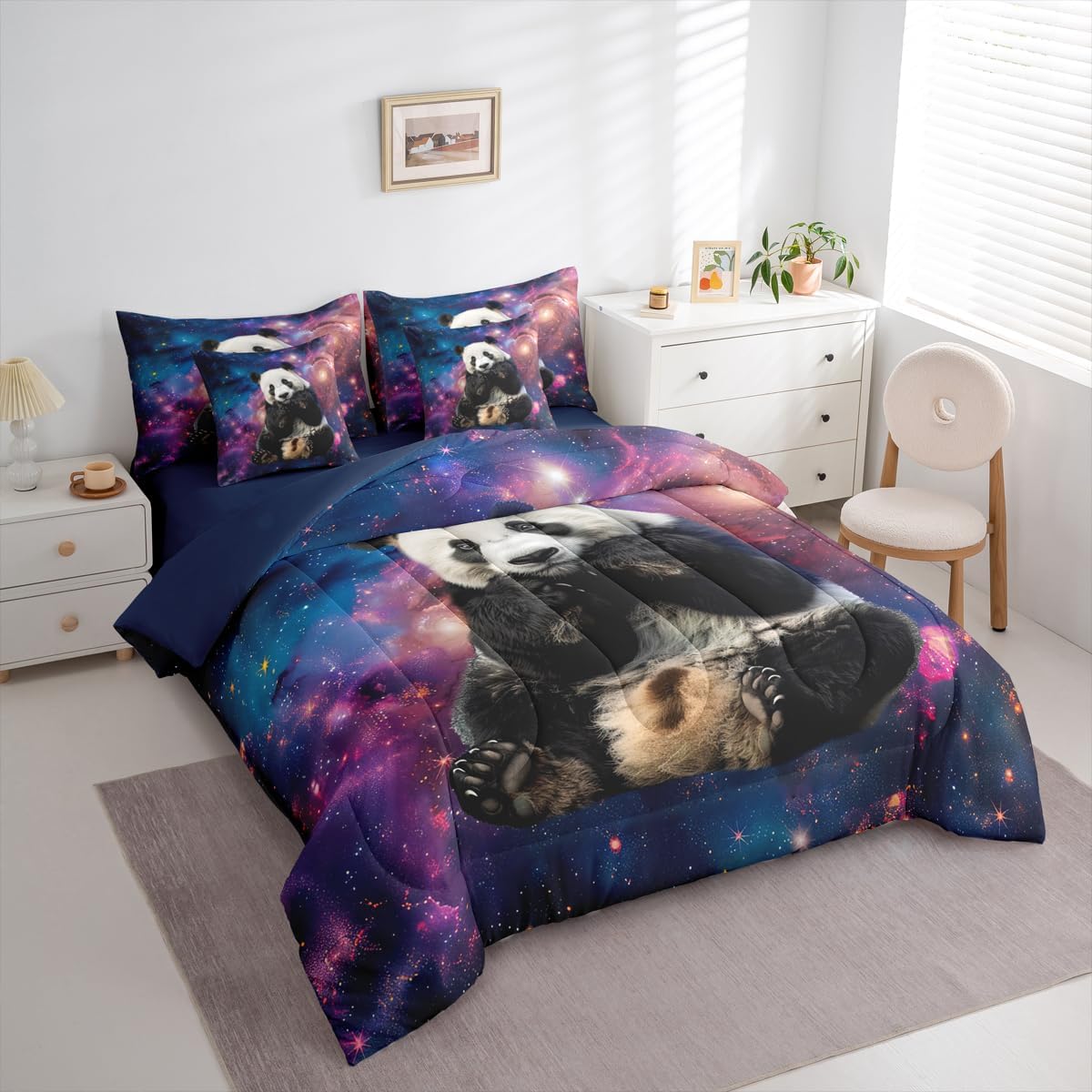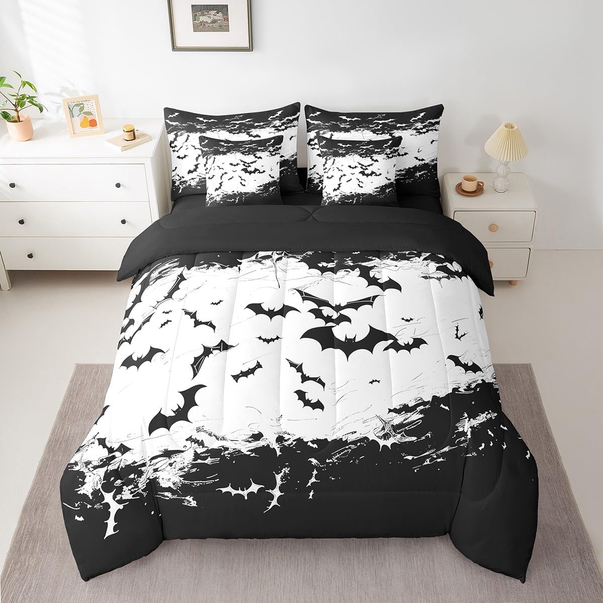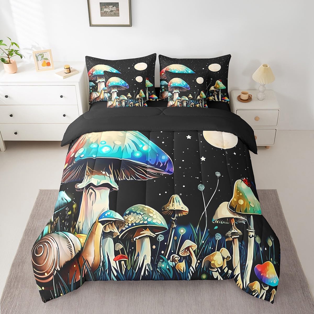 Welcome to our store. Size information: Twin size: 1 Comforter 68"W x 90"L and 1 Fitted Sheet 39"W x 75"L x 16"H and 1 Flat Sheet 67"W x 96"L and 2 Pillowcases 20" x 30" and 2 Throw Pillow Covers 18" x 18" . Full size: 1 Comforter 79"W x 90"L and 1 Fitted Sheet 55"W x 75"L x 16"H and 1 Flat Sheet 81"W x 96"L and 2 Pillowcases 20" x 30" and 2 Throw Pillow Covers 18" x 18" . Queen size: 1 Comforter 90"W x 90"L and 1 Fitted Sheet 60"W x 80"L x 16"H and 1 Flat Sheet 90"W x 102"L and 2 Pillowcases 20" x 30" and 2 Throw Pillow Covers 18" x 18" . King size: 1 Comforter 104"W x 90"L and 1 Fitted Sheet 78"W x 80"L x 16"H and 1 Flat Sheet 90"W x 106"L and 2 Pillowcases 20" x 36" and 2 Throw Pillow Covers 18" x 18" . Useful and practical: A luxurious product for homes,dorm rooms,hotels,guest rooms.Practical to use for being polyester, feels like cotton which is super soft and breathable.No chemicals used, no dye substance harming the health of you or your family. Unique design: Vivid Colors won't fade thanks to new 3d digital printing methods. These unique designs match well with various color palettes of your rugs, curtains, headboard, furniture, and all other decor accessories. Washing instructions: Machine wash it in cold water without bleach,and tumble dry on low heat to restore its freshness and appearance.