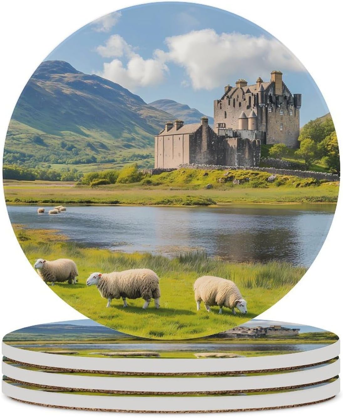 Cute Printed Round Drinks Absorbent Ceramic Coaster with Cork Base Suitable for Kinds of Mugs, Cups, Prevent Tabletop Wear And Scratches, and is Easy to Clean