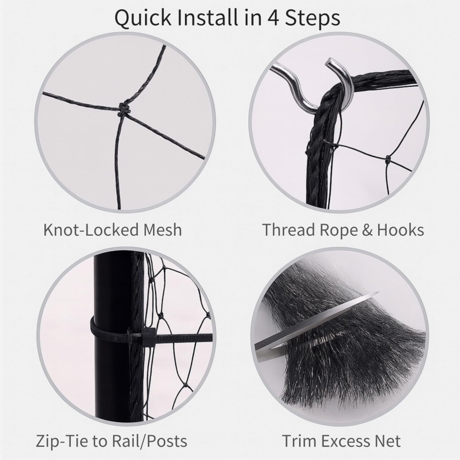 Design a safer cat-friendly space without blocking views. This cat netting for balcony and windows works as an apartment balcony screen or a balcony net for cats, keeping airflow while adding a light barrier.For windows, use it as cat window netting or a window screen for cats; it also supports window catio and full catio netting layouts. On patios and decks, the same mesh functions as patio netting for cats, pet patio net, and deck netting for pets. In yards, it can even serve as light garden netting where visibility matters.Choose white cat netting or black to suit your décor. Multiple sizes are available, so you can select the cat net for balcony that fits your apartment balcony or terrace.Installation is flexible: attach the net for cats to posts or frames with hooks, rope, and cable ties. This balcony screen cat netting is a helpful barrier but not a safety device—always supervise pets and follow local building rules.What you get depends on the variant you choose; see images for kit examples and size options.