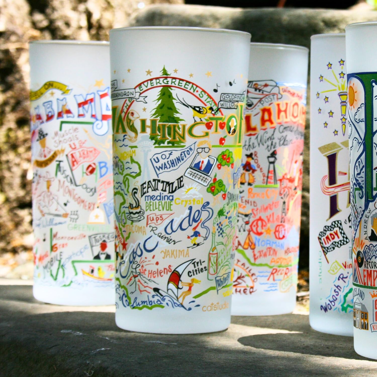 Introducing our State themed 15oz Glass Drinking Glass Set, beautifully crafted with organic inks that offer an unlimited range of vibrant colors, including stunning silver and gold accents. This high-quality frosted glass is designed to impress, combining aesthetic appeal with durability. Our versatile glass is perfect for various beverages, whether it's water, your favorite drink, or even a refreshing margarita. With its tall and sturdy construction, it provides a comfortable grip and fits seamlessly into your hand. The thick and heavy glass ensures stability and long-lasting use, making it ideal for everyday enjoyment. Add a touch of pride to your kitchen with these clear drinking glasses. These glass cups are not only visually appealing but also highly practical. The dishwasher-safe feature ensures easy cleaning and maintenance, allowing you to enjoy your favorite beverages without the hassle of hand washing. The 15 ounce capacity provides ample space for your drinks, making it suitable for both casual and formal occasions. Enjoy our set of two drinking glasses, the perfect gift to commemorate your love for your favorite state.
