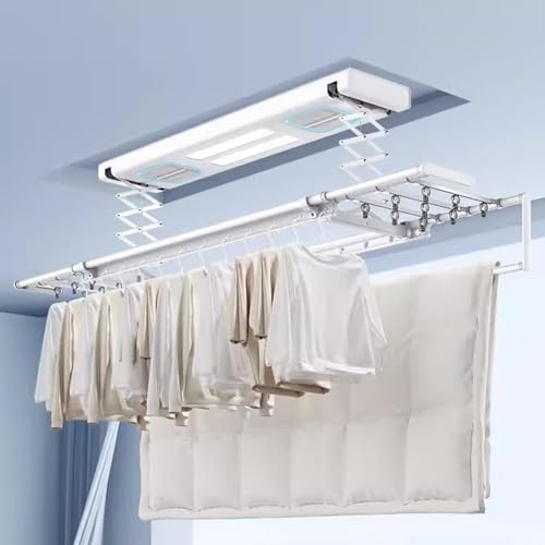 Ceiling Clothes Dryer Wall and Ceiling Clothes Dryer Aluminium,Durable material, waterproof, light-resistant, high temperature test, easy to wipe clean. Strengthen the thickening rod, good toughness and strong bearing capacity. Ultrathin Embedded Invisible Electric Clothes Drying Rack Hidden Lifting Balcony Automatic Household Clothes Hanger Name: Electric Clothes Hanger / Electrical Drying Rack Material: Aluminum Alloy Color: White/Black Rated voltage: 220V/50Hz Normal installation hole spacing: 15.5 * 112.5cm Ceiling installation hole spacing: 18.8 * 112.5cm Load bearing: 35kg Packaging included: 1 pc * Drying Rack(Including all installed accessories)