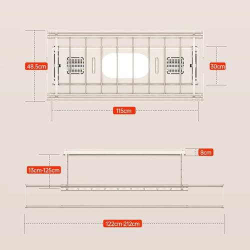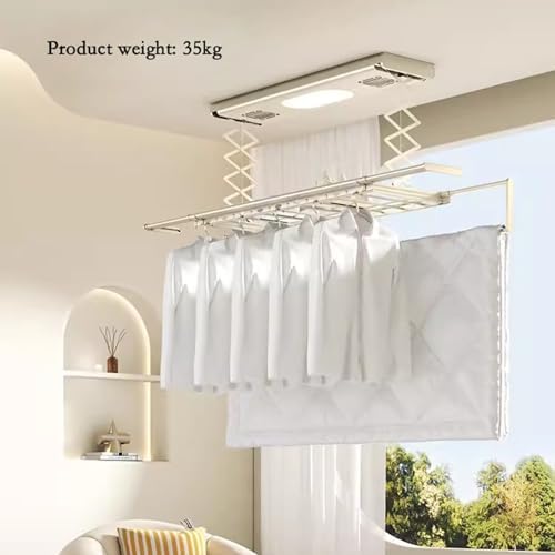 Ceiling Clothes Dryer Wall and Ceiling Clothes Dryer Aluminium,This retractable ceiling drying rack is easy to install. It does not require any complicated tools. It is safe and easy to use. The folding drying rack is chic in design, stylish in appearance and easy to utilize. Name: Electric Double pole Clothes Hanger Material: Aluminum Alloy Overall size: 132x33.6x5.8cm Telescopic distance: 117-208cm Lifting distance: 120cm Rated voltage: 220V/50Hz Product weight: 35kg Packaging included: 1 pc * Drying Rack(Including all installed accessories) Notice: 1. Please check the size before buying. Due to manual measurement, an error of 0-3mm will occur. beg for mercy! 2. Excluding items other than the drying rack in the product photos. 3. Please note that due to different monitors, there may be slight color difference, please understand. 4. The above data is for reference only, the size is manually measured, each variable may be different, please refer to the actual product, thank you.