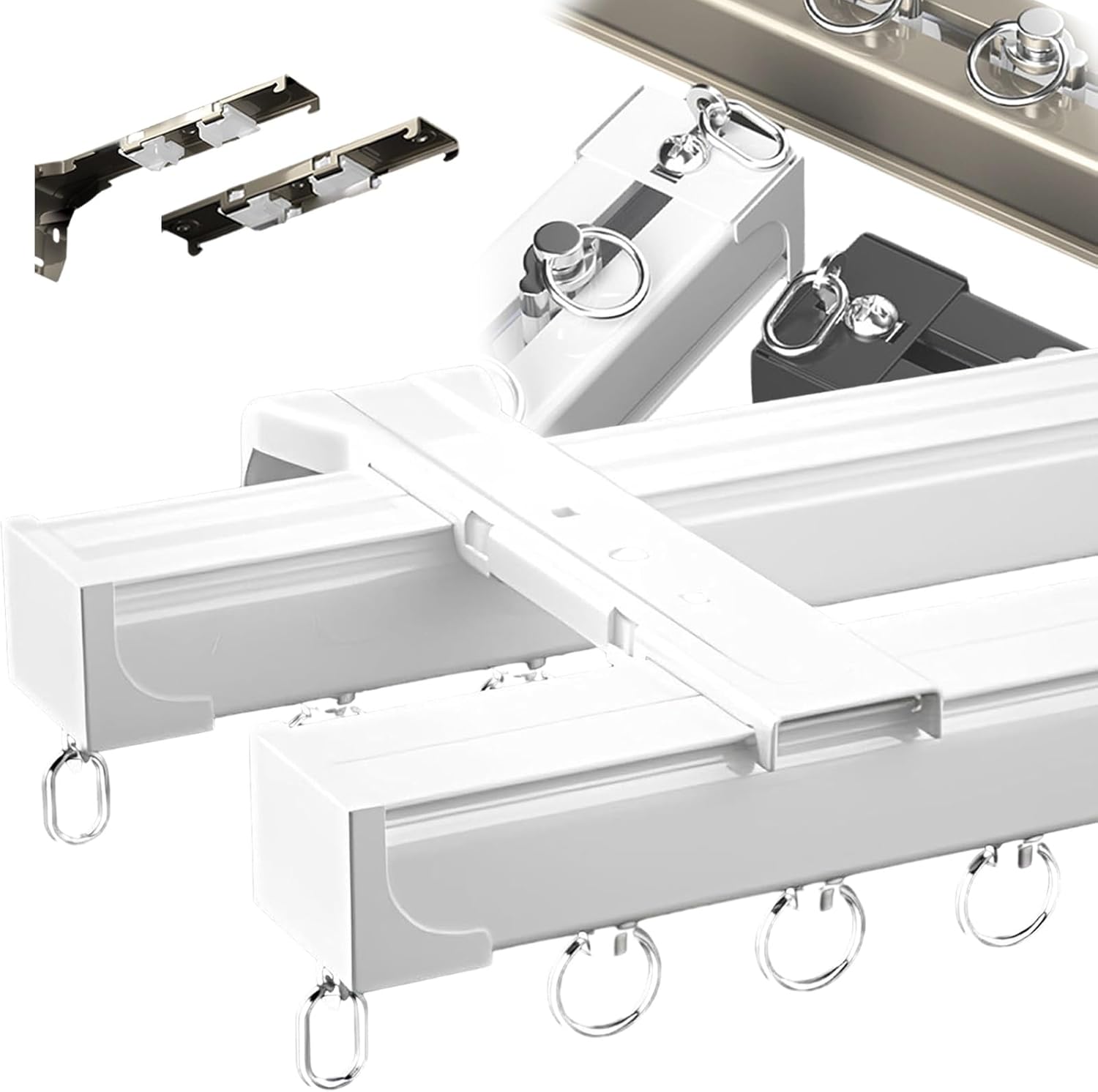 Transform your living space with our premium Curtain Track Kit, designed for versatility and style. Crafted from high-quality aluminum, this sturdy track system is perfect for a variety of settings, including homes, hospitals, and offices. Its durable construction ensures long-lasting performance, making it an ideal choice for both everyday use and special occasions. Available in three elegant colors—white, black, and champagne—this curtain track seamlessly complements any interior design theme. Whether you're looking to create a cozy atmosphere in your bedroom or a functional room divider in your living space, our track system adapts to your unique needs. The Curtain Track Kit includes everything you need for easy installation and smooth operation. Each kit features tracks, end caps, universal bearing wheels, and both ceiling and wall mounting brackets. The bearing wheels are designed for strength, allowing you to hang heavy-duty curtains with ease. With two mounting options—top and side—you can customize the setup to fit your space perfectly. Upgrade your home decor with our reliable curtain track system that combines functionality and aesthetic appeal. Experience the difference in quality and style while enjoying the convenience of a well-designed curtain solution. Transform your environment today!