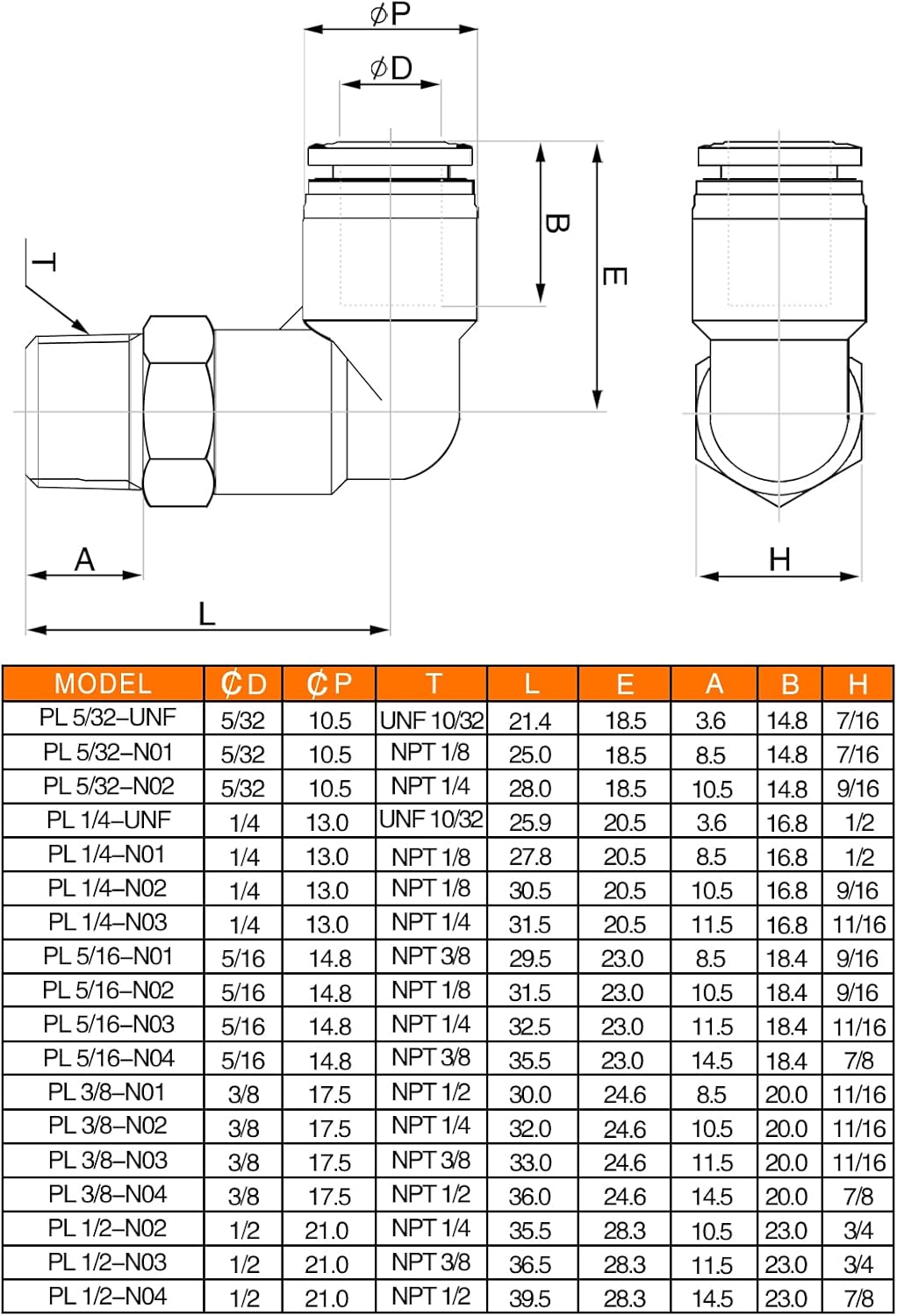 | Size | 5/32" OD X 1/8" MNPT |