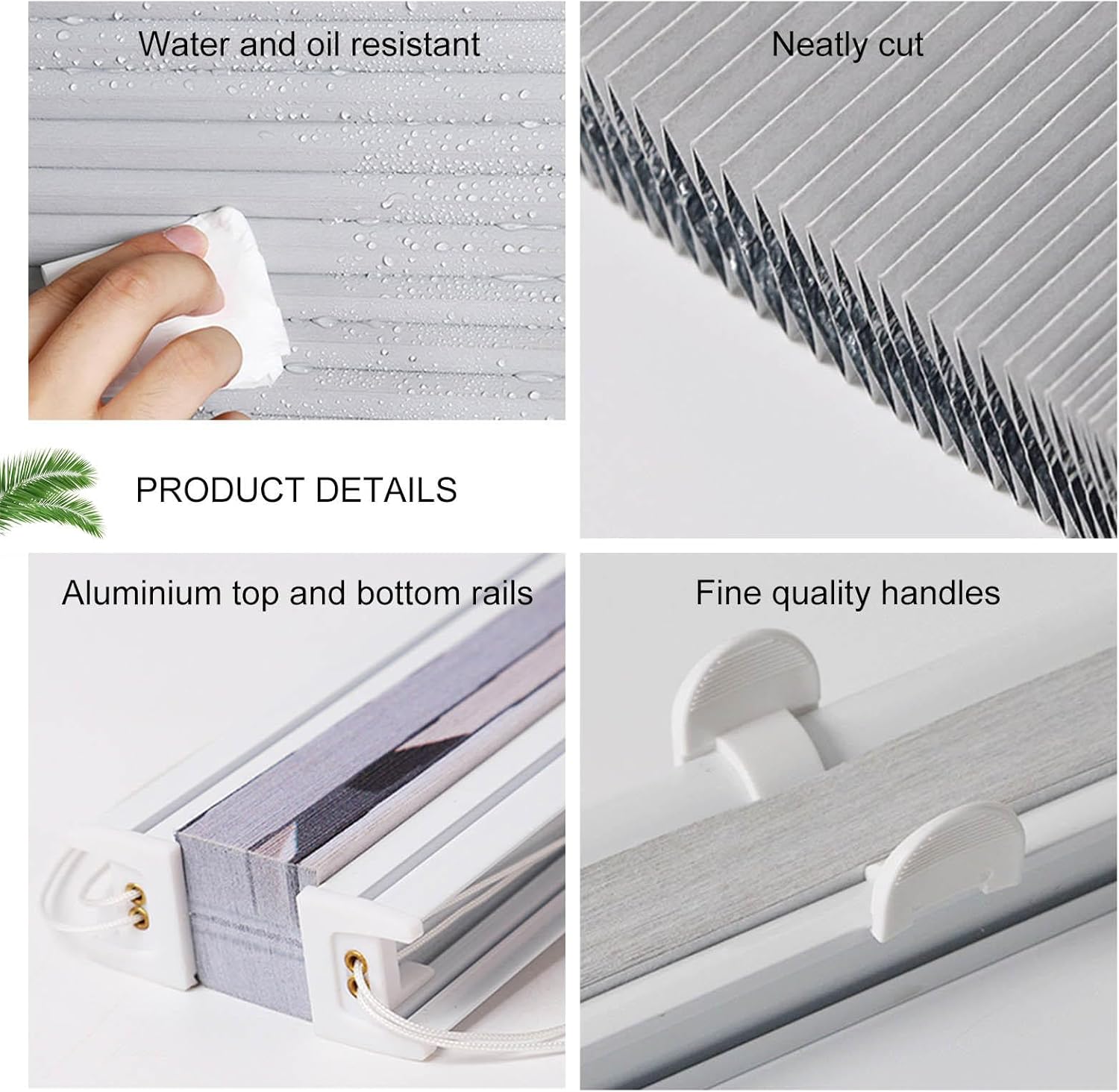 ✚The blinds are made of environmentally friendly hydroentangled no-nuisance fabric with a unique hexagonal honeycomb structure and built-in tin foil layer, which has a shading rate of up to 99%, providing a variety of functions such as sun shading, UV protection, heat insulation and heat preservation, sound insulation and noise reduction, privacy protection, and energy and cost savings; ✚Honeycomb blinds are made of aluminium alloy upper and lower rails with nylon high-precision fibre braided cords and high-quality fine handles, which can be moved up and down freely to achieve the perfect control of light and privacy, ideal for bedrooms, living rooms, kitchens, bathrooms, offices and more;✚ Product parameters: Name: Honeycomb pleated blinds Fabric material: Hydroentangled no nuisance polyester Colour: Grey Dimensions: Width x height (customizable, width range: 10-160cm, height range: 10-280cm) Package includes: Honeycomb pleated blinds x 1, installation accessories✚Product Features: Eco-friendly fabric, water and oil resistant, abrasion resistant, tear resistant, anti-aging, durable; Cordless design, very friendly to the elderly, children and pets;✚Note: Manual measurement, the size may have 0-3cm error, please understand; Due to different monitors and shooting environments, the actual colour may be slightly different from the picture, please refer to the real thing; If there is a quality problem with the product or it doesn't meet your expectations, you can contact us by email first, we will provide you with a satisfactory solution.