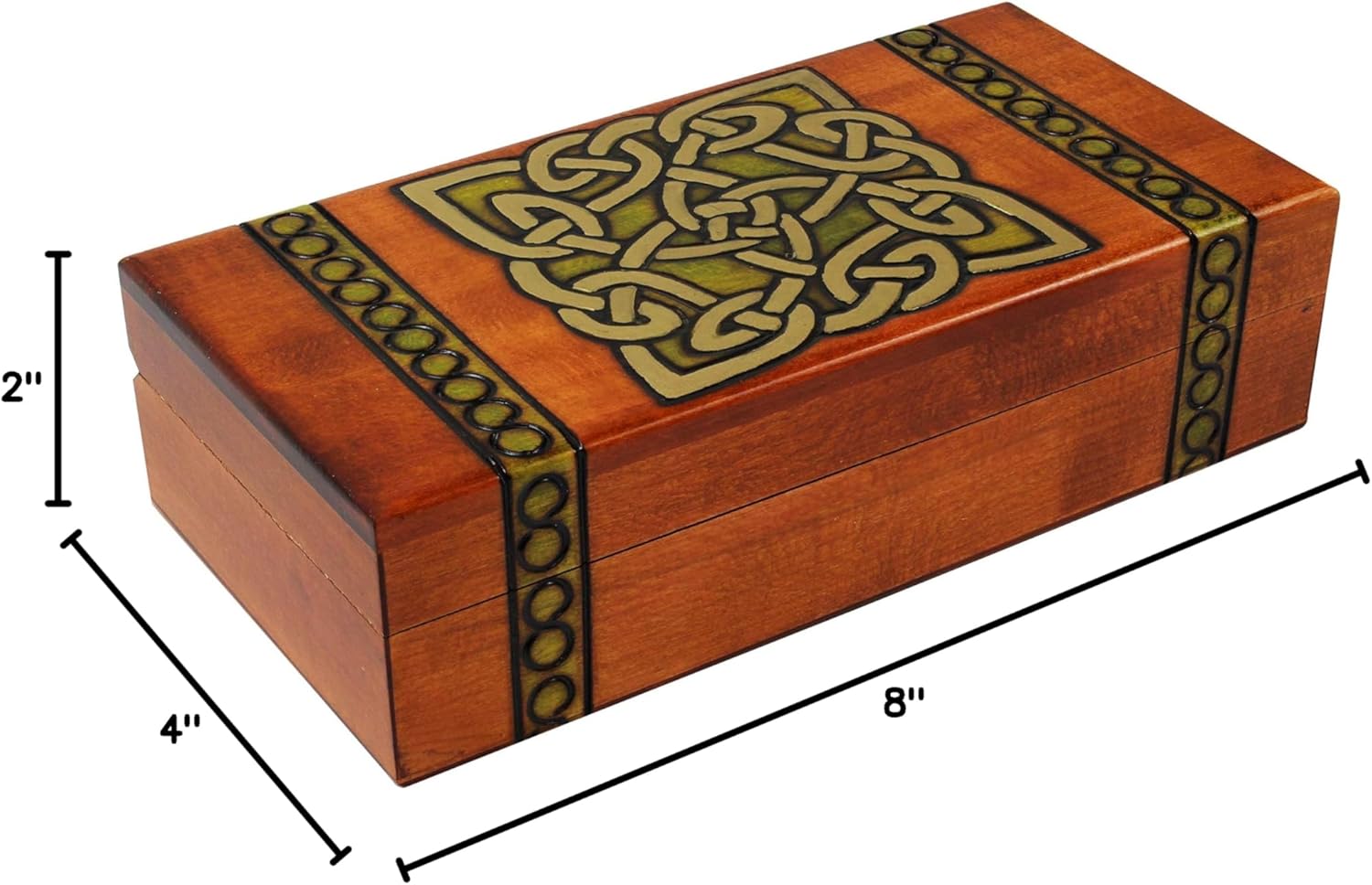 Handcrafted in Southern Poland's mysterious Tatra Mountains, this box is a unique Polish box. Farmers and shepherds settled into the Tatra region of the Carpathian Mountains called Podhale toward the end of the first millennium AD. During the winter months as their fields lay under snow, the farmers spent their days woodworking. Every member of the family participated in the decoration of these fine boxes. Most local art cooperatives were members of Cepelia, the national arts and crafts institution, which set up very stringent controls and standards on craft production and completely monopolized trade in crafts. This policy resulted in strict, meticulous production of very high quality, non-commercialized handmade products. Wood burning and inlays were added as decoration techniques. Colored stains added a new dimension to the designs and varnishes were applied to protect the decorated surfaces. The Secret Opening Compass Rose Cartography Box is a one of a kind storage box for your trinkets, keepsakes, jewelry, or memorabilia. The box is made of Linden wood, is reinforced with feather joints, and the base of the interior is lined with red velvet to protect your personal treasures. The top of the box is decorated with a Celtic Knot design that has been burned into the wood by hand.